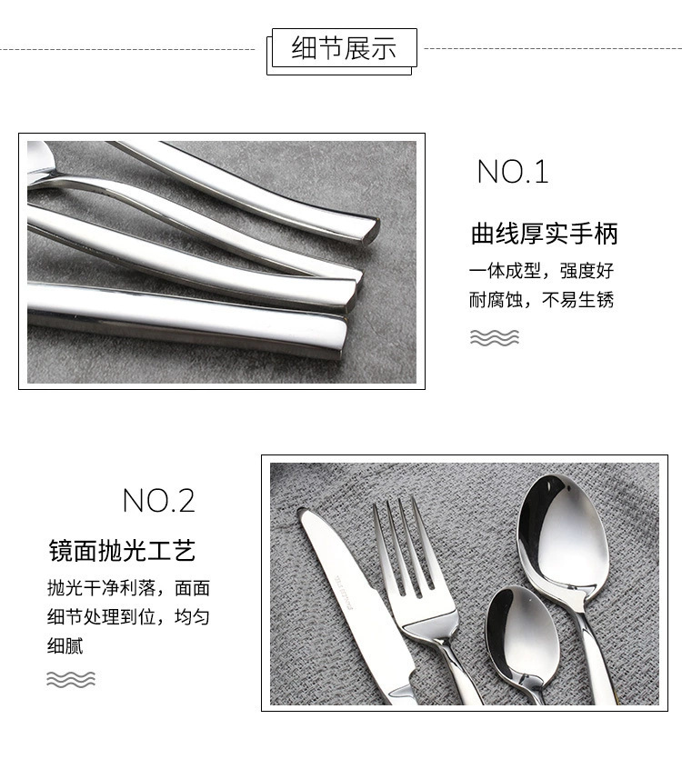 Wave handle stainless steel knives, forks, spoons, Western hotel tableware, stainless steel Western tableware 113 series factory wholesale