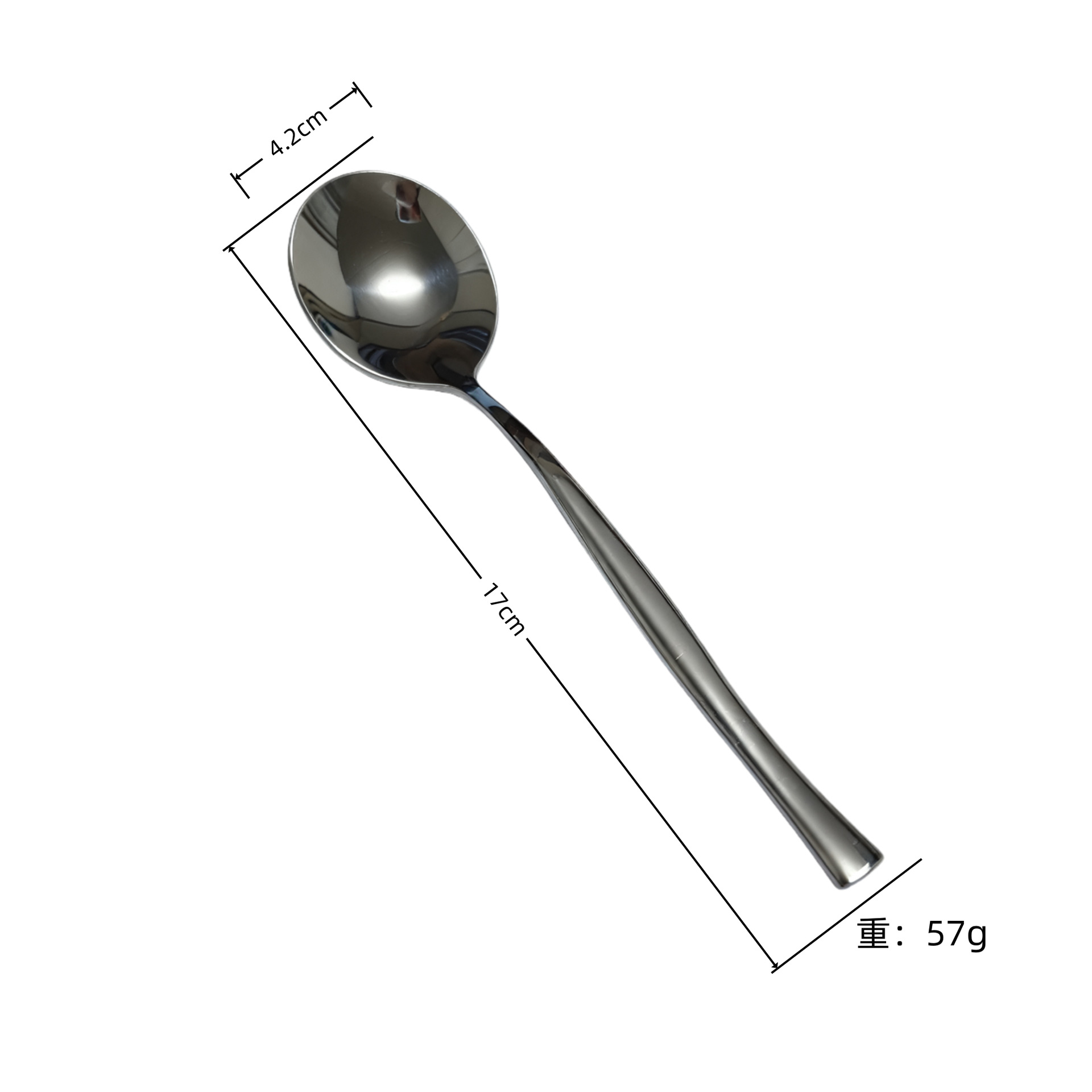 | three | Spoon made of stainless steel |