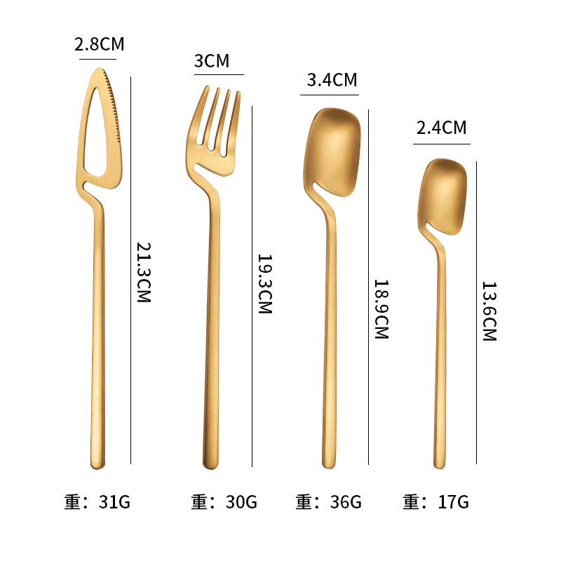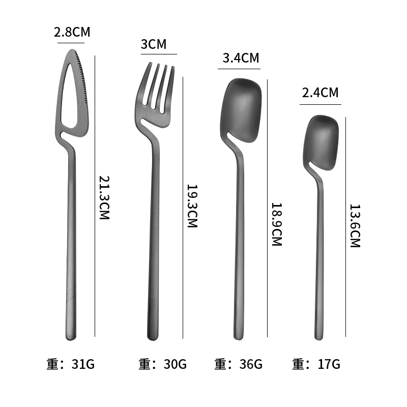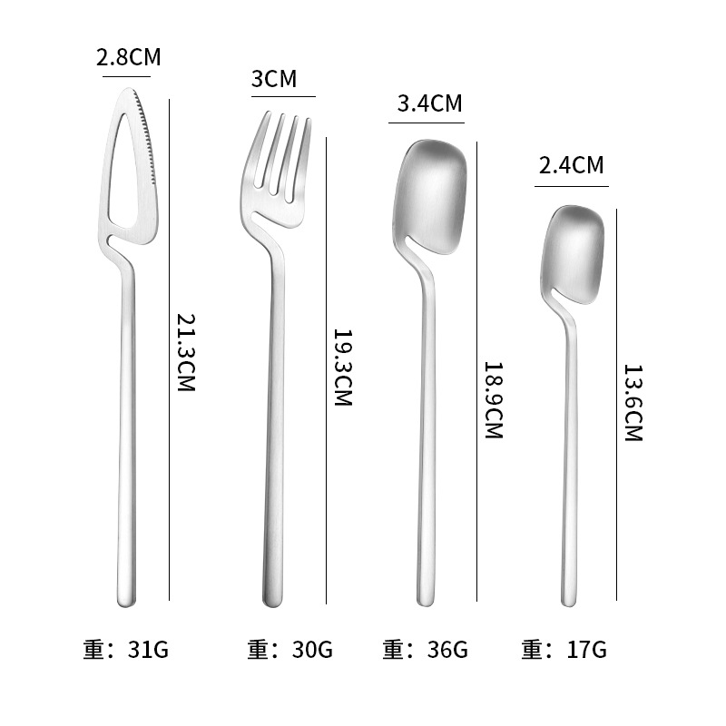 Cross border 304 stainless steel hanging cup knife fork spoon set creative Western tableware household sanding coffee dessert spoon