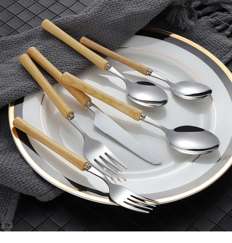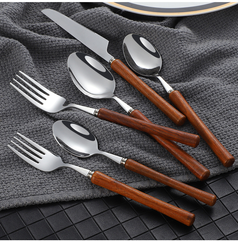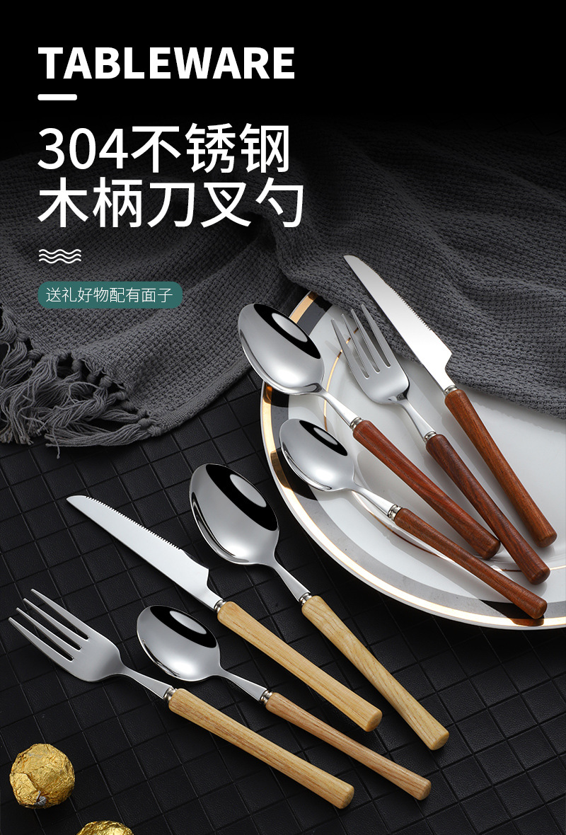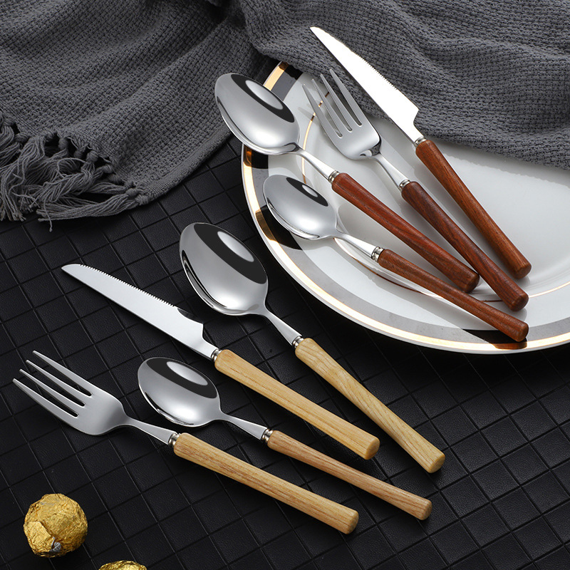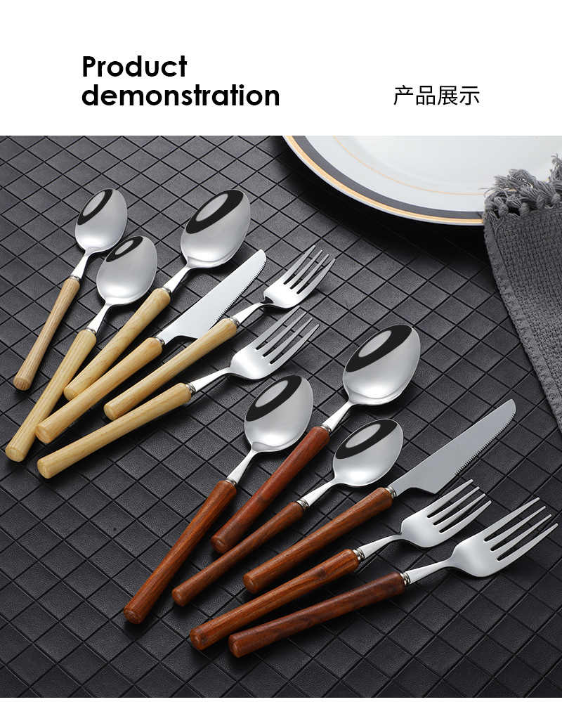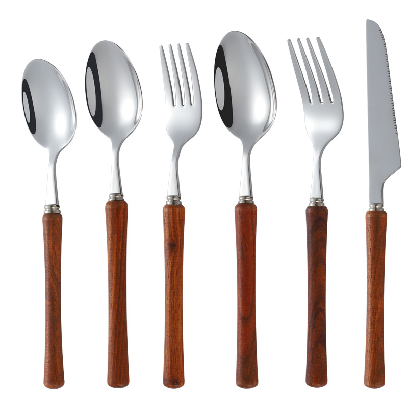Японская нержавеющая сталь 304 ложка вилка ложка высококачественная деревянная рукоятка посуда домашняя высококачественная деревянная рукоятка стейк нож десертная ложка