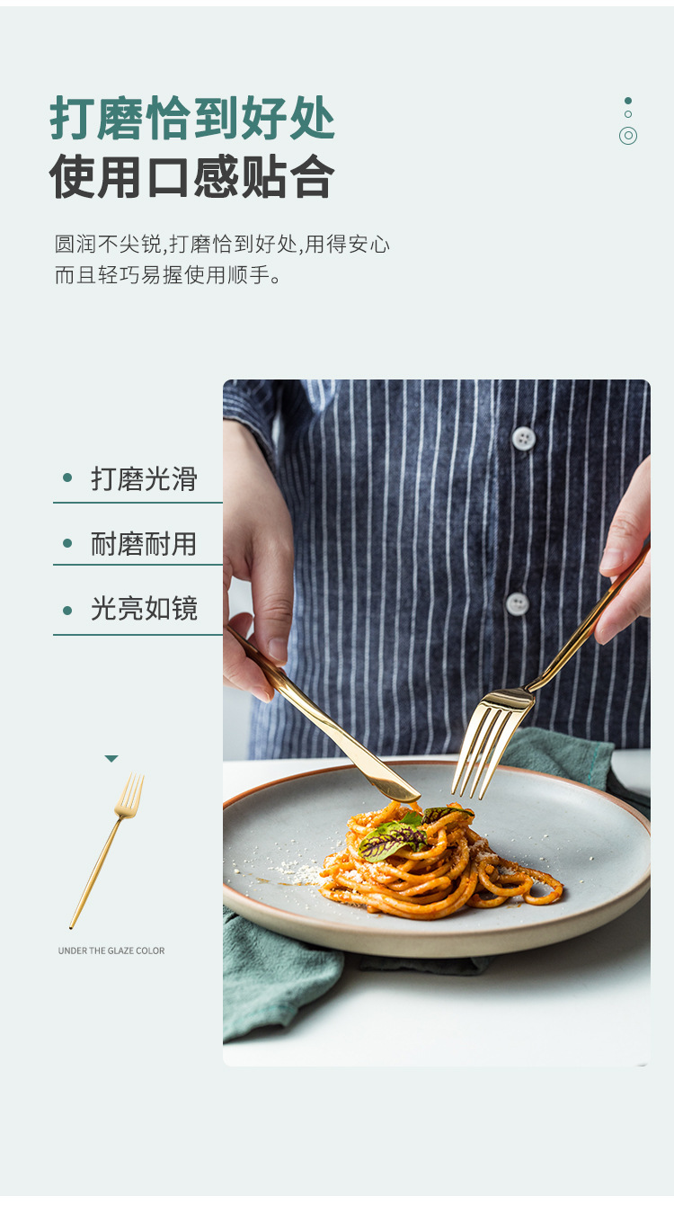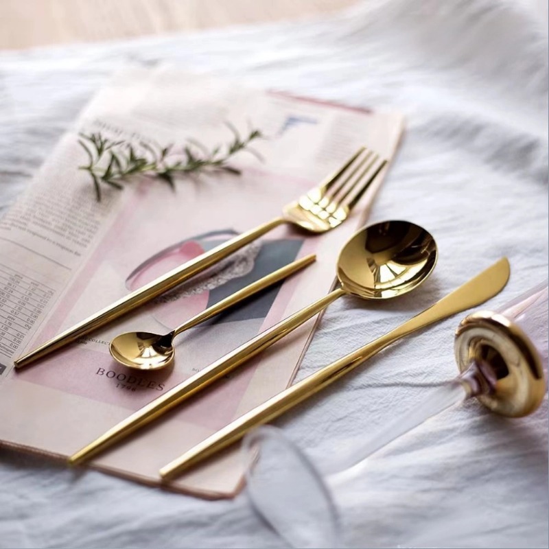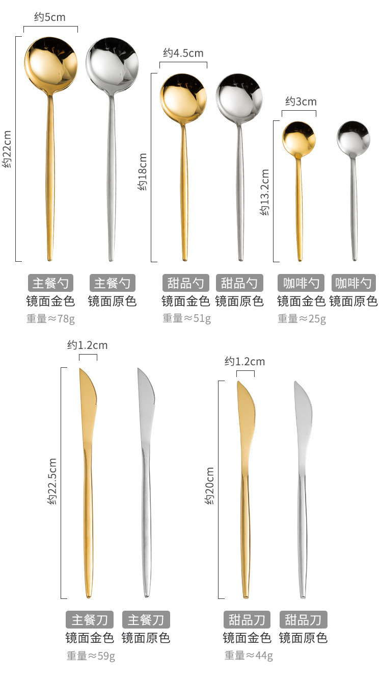 Portuguese 304 mirror gold Western style knife, fork, spoon, cutlery, steak knife, fork, dessert fork, spoon, coffee spoon, chopsticks