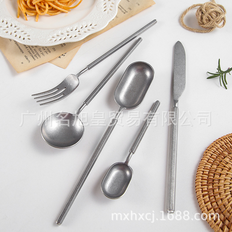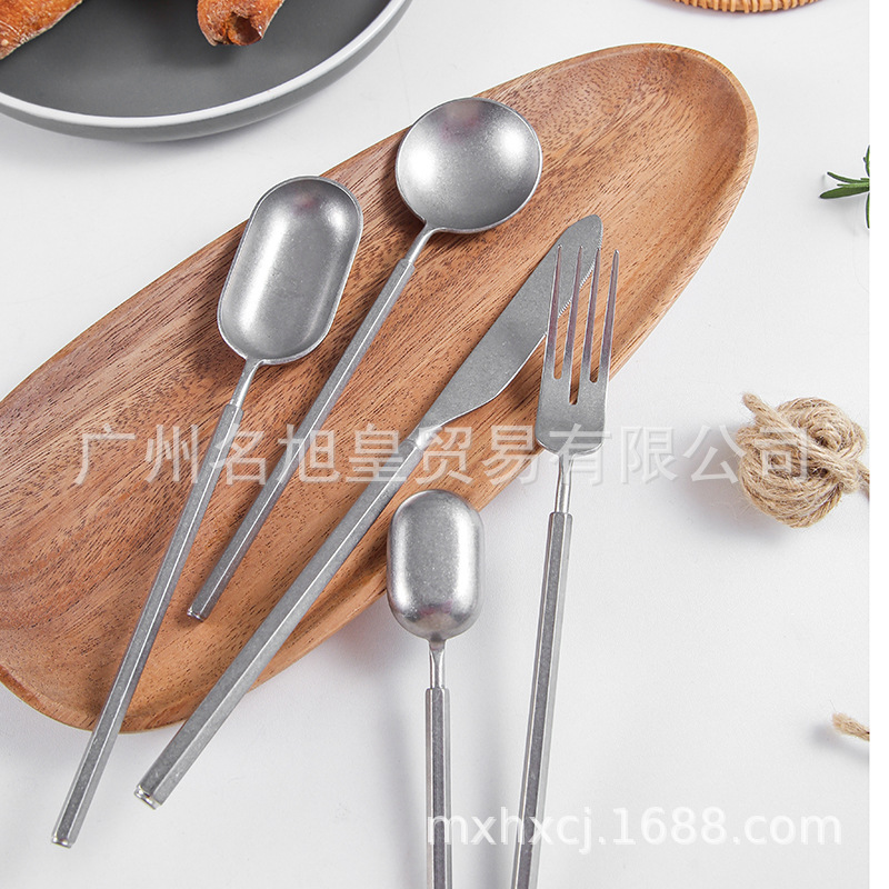 【两支起包邮】雪花砂304不锈钢六角柄刀叉勺汤勺茶勺西餐餐具