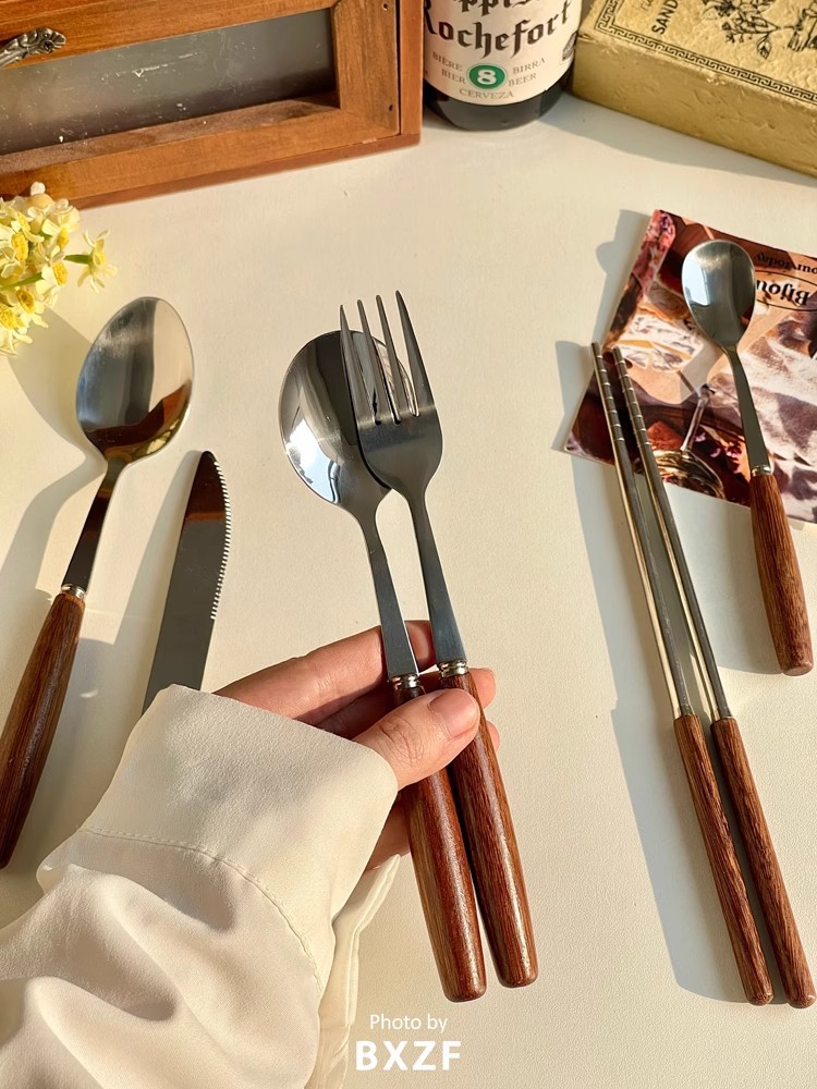 Деревянная посуда, палочки для еды, ложки, наборы из нержавеющей стали высокой ценности