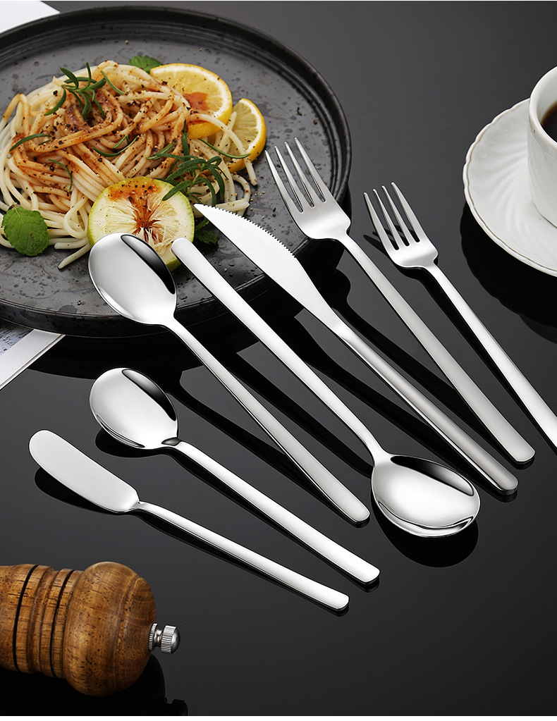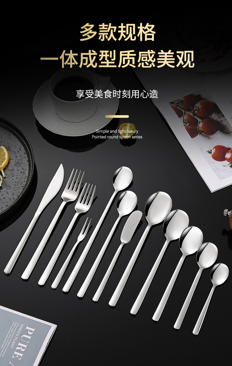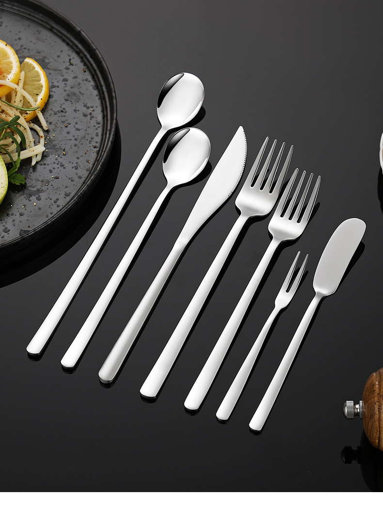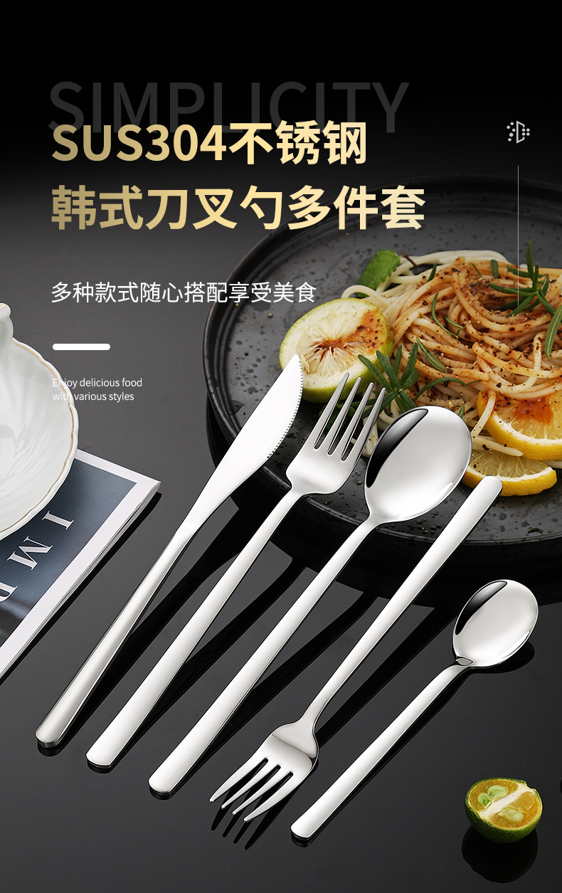 Korean style knife, fork, spoon, 304 stainless steel spoon, household thick Western tableware, long handled dessert spoon, spoon, steak knife, fork