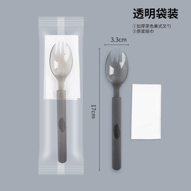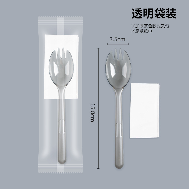 Disposable high-end American style Western food spoon, individually packaged salad, light food watermelon fork spoon, commercial thick plastic takeaway