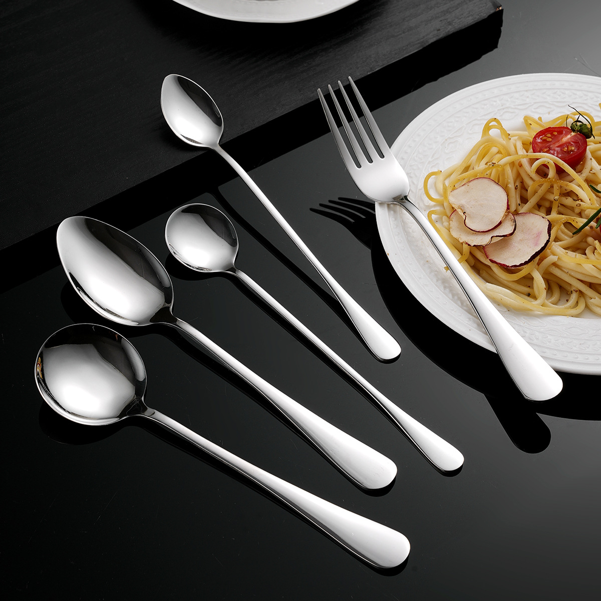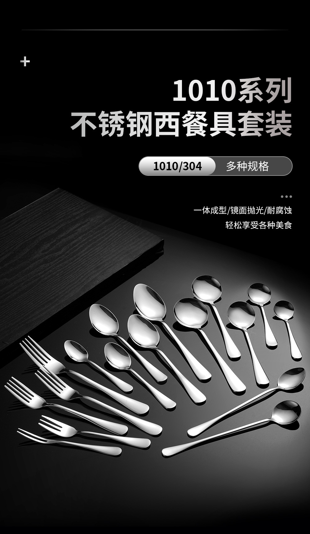 【 Free samples 】 304 food grade stainless steel tableware 1010 series spoon set hotel steak knife fork spoon