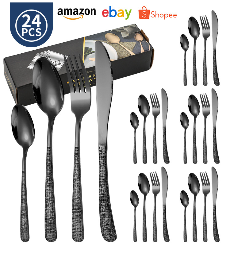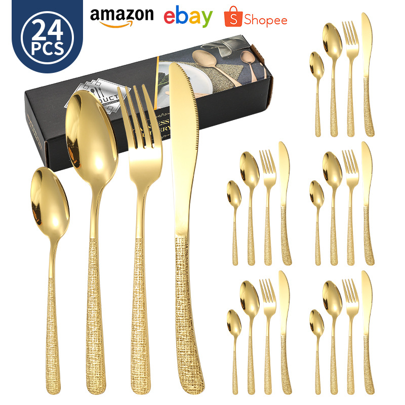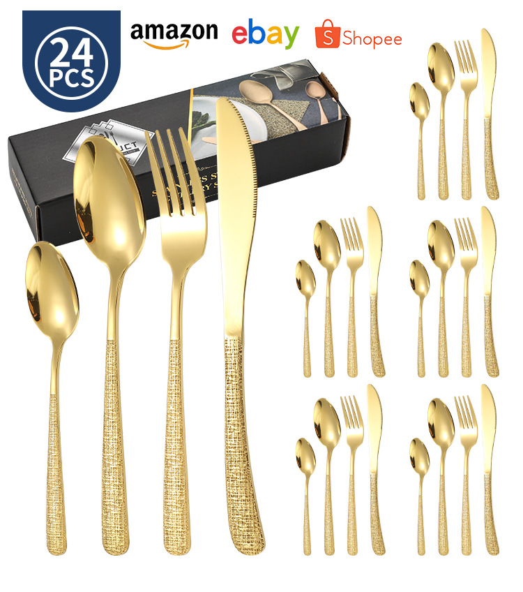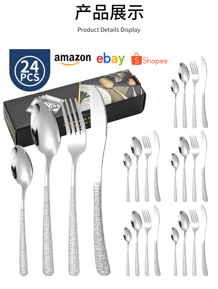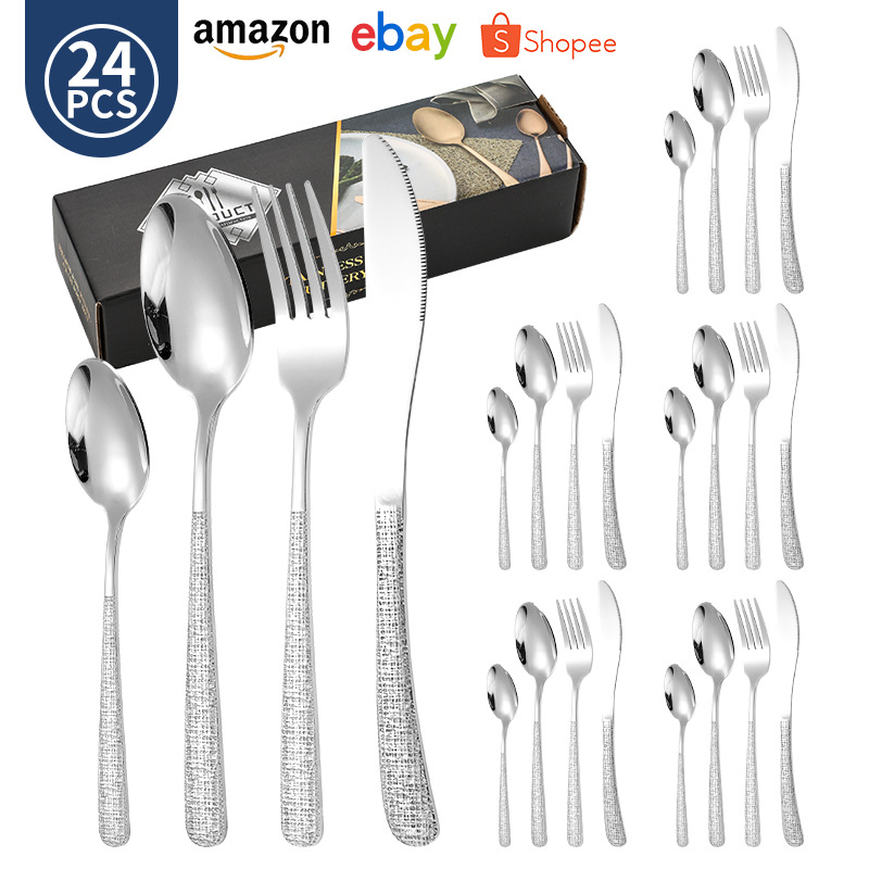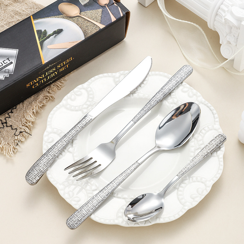Cross border Amazon Western tableware elegant hammer pattern home restaurant hotel stainless steel knife, fork, spoon 18/24 piece set