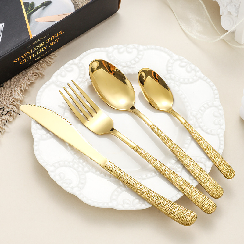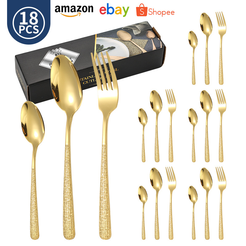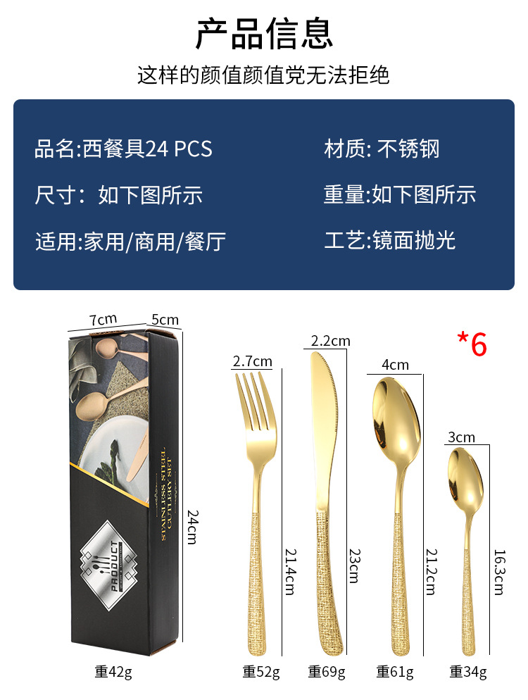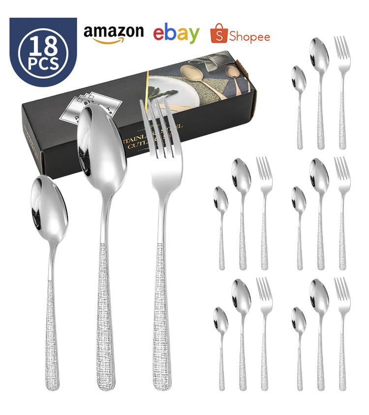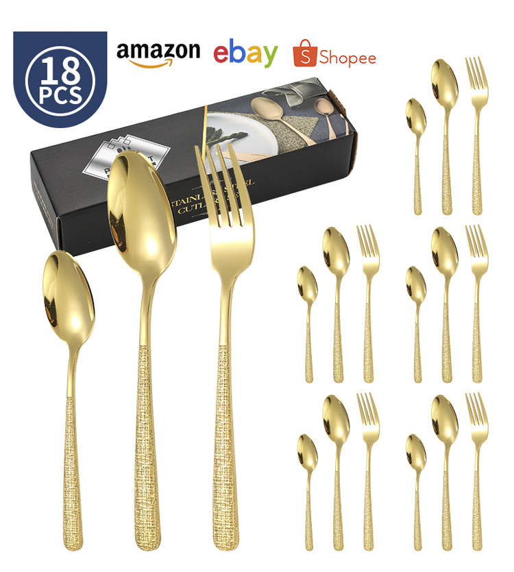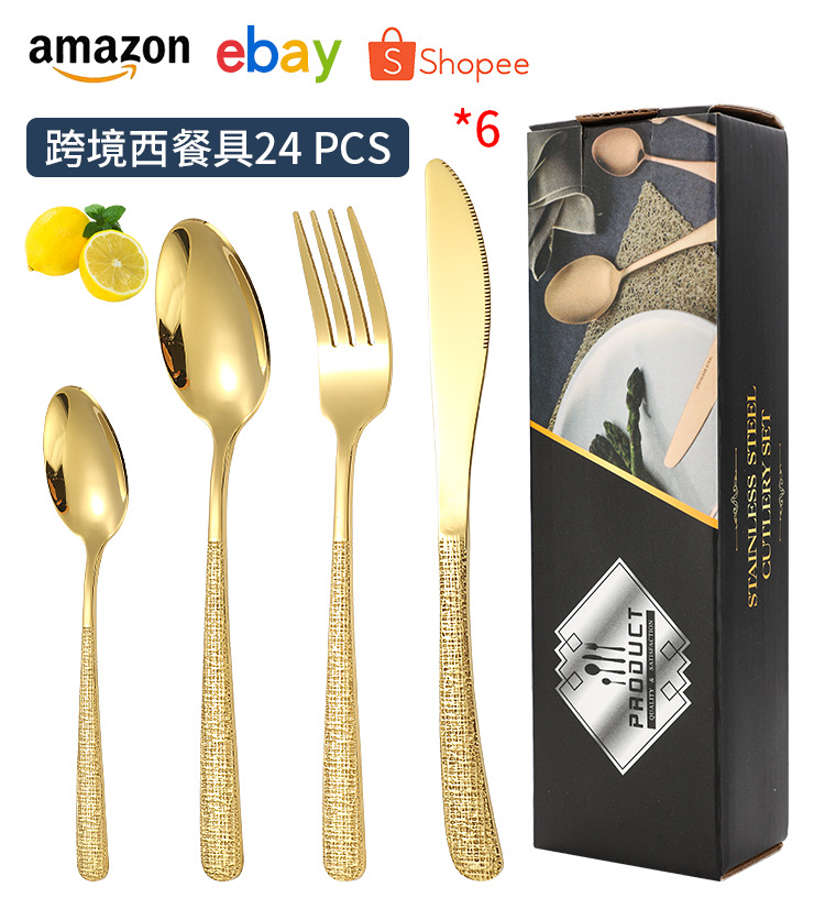 Cross border Amazon Western tableware elegant hammer pattern home restaurant hotel stainless steel knife, fork, spoon 18/24 piece set