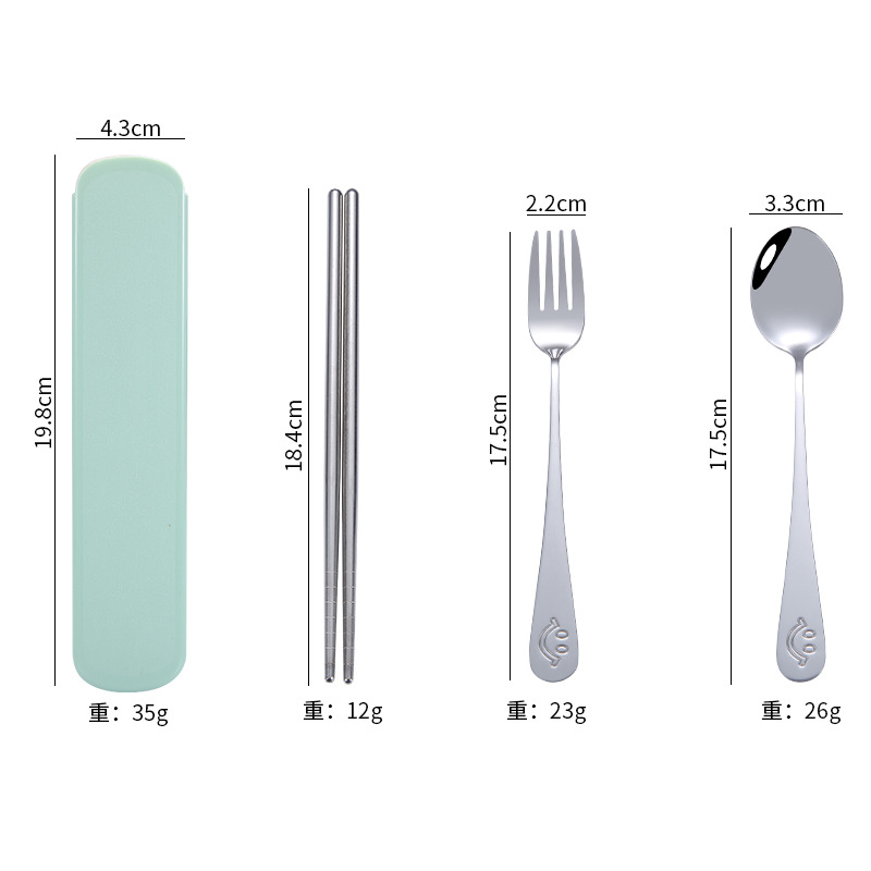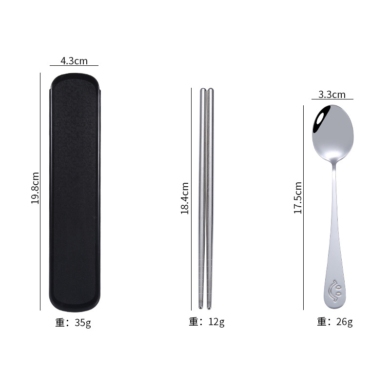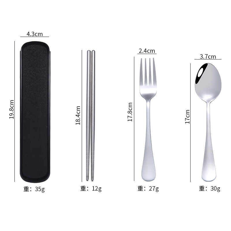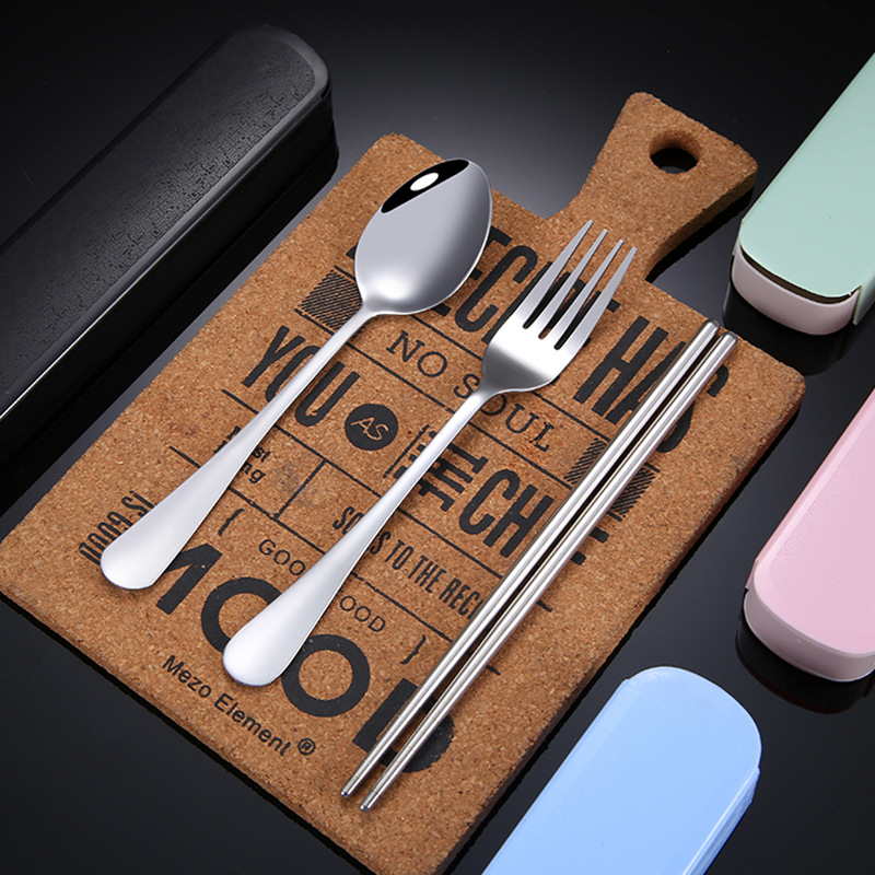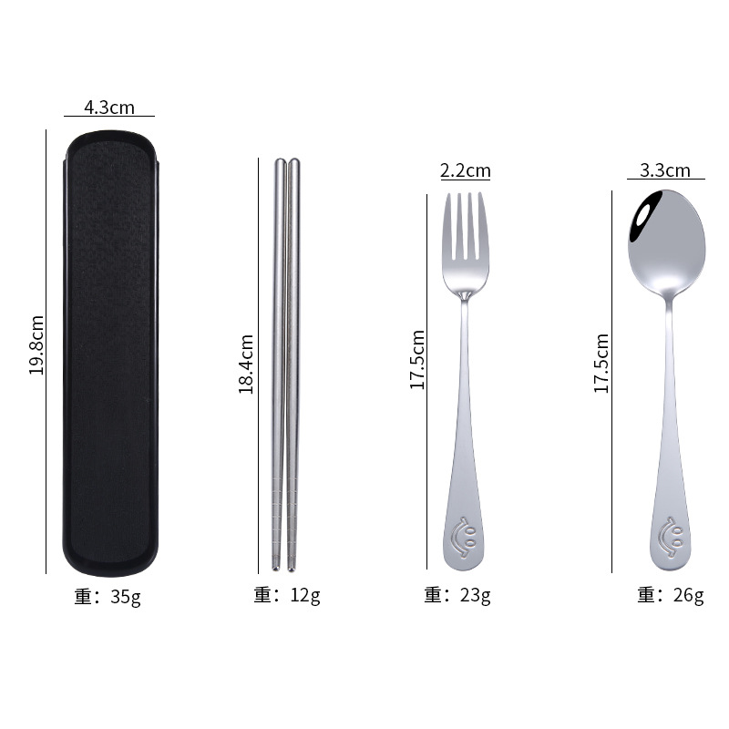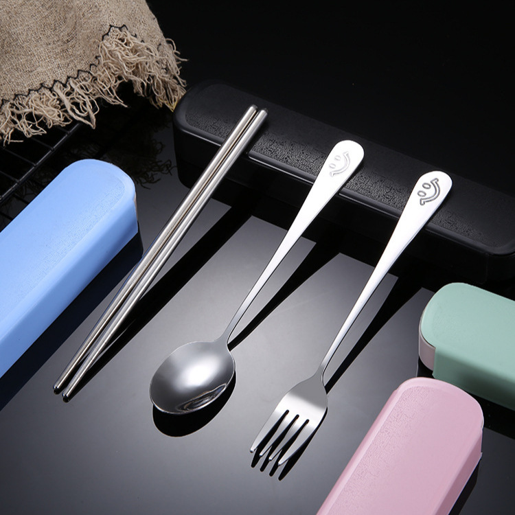 Stainless steel cutlery, forks, chopsticks, spoons, three piece set, portable for student travel, one storage box wholesale