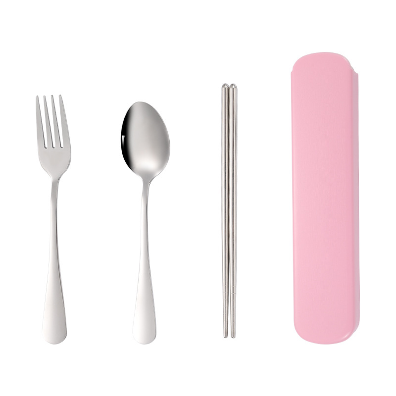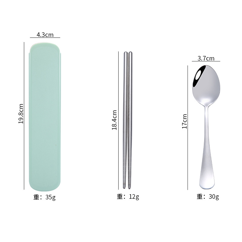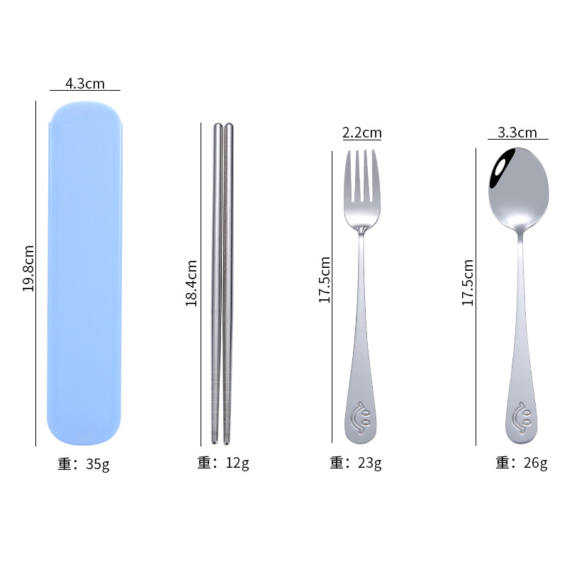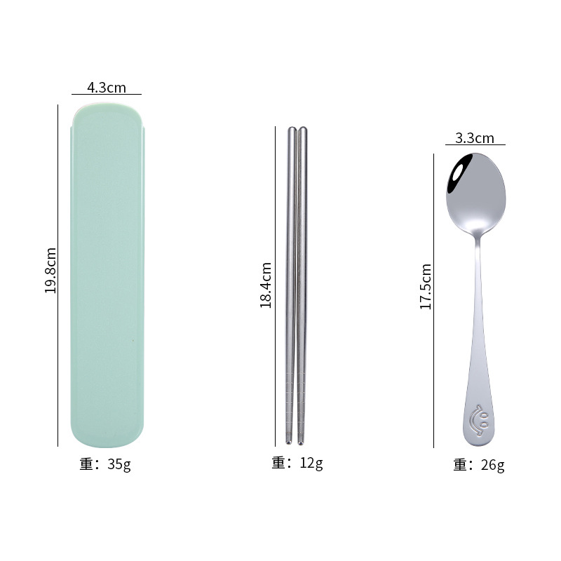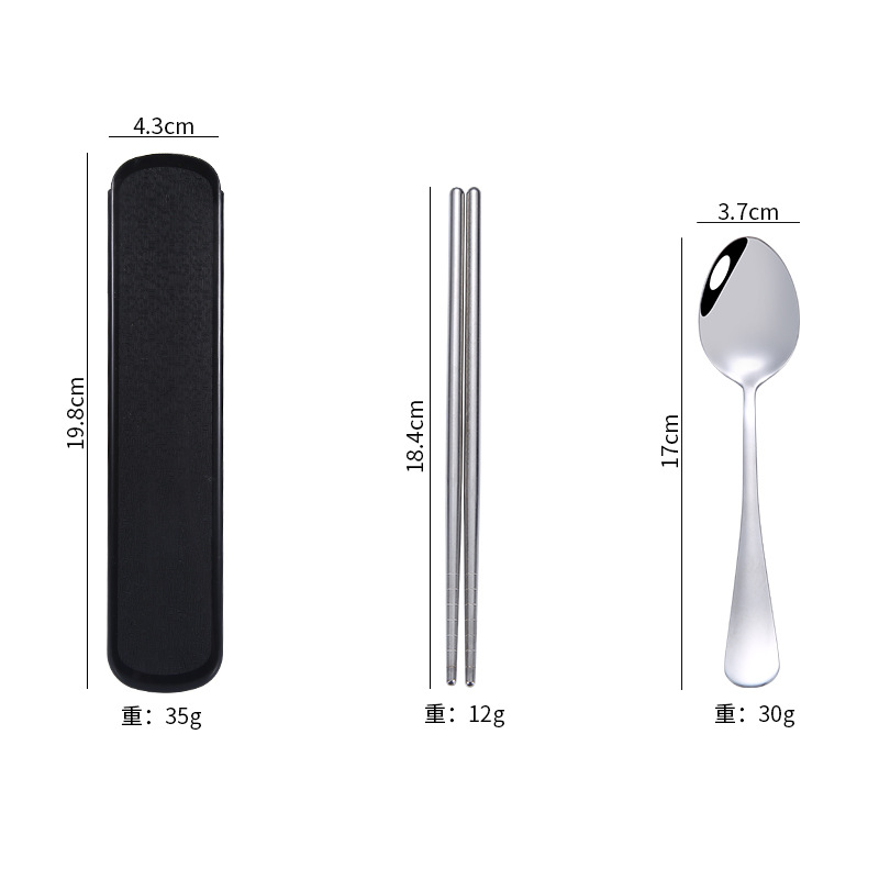 Stainless steel cutlery, forks, chopsticks, spoons, three piece set, portable for student travel, one storage box wholesale