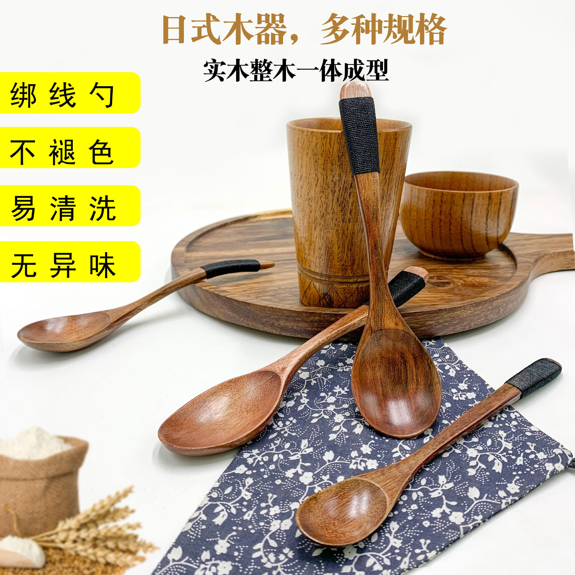 Haoyuan ложка Оптовая японская детская ложка ручная вязка деревянная ложка вилка деревянная ложка может выгравировать логотип