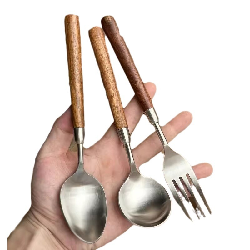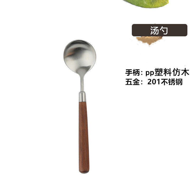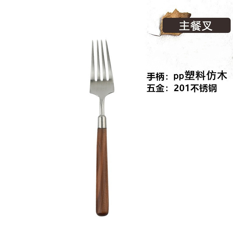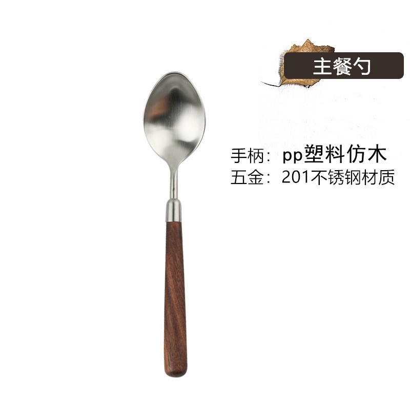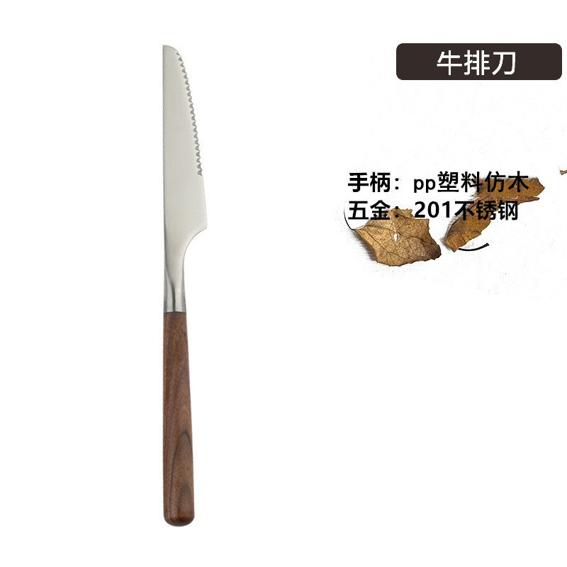 Stainless steel wooden handle tableware, Western style knife, high-end feeling, imitation walnut spoon, soup, dinner, steak fork set
