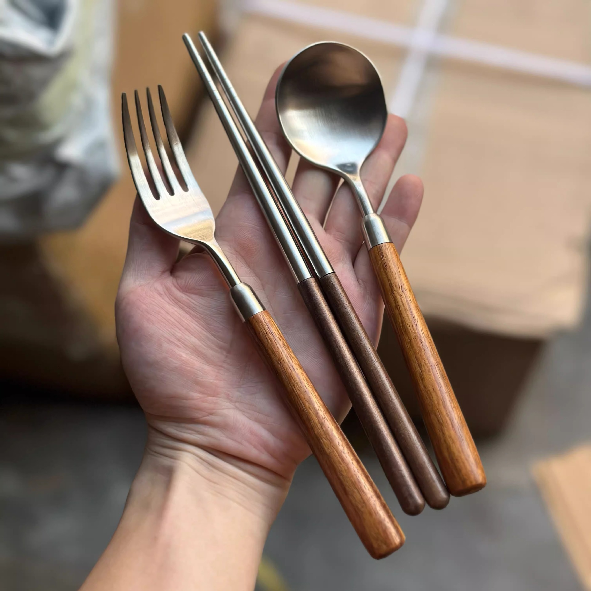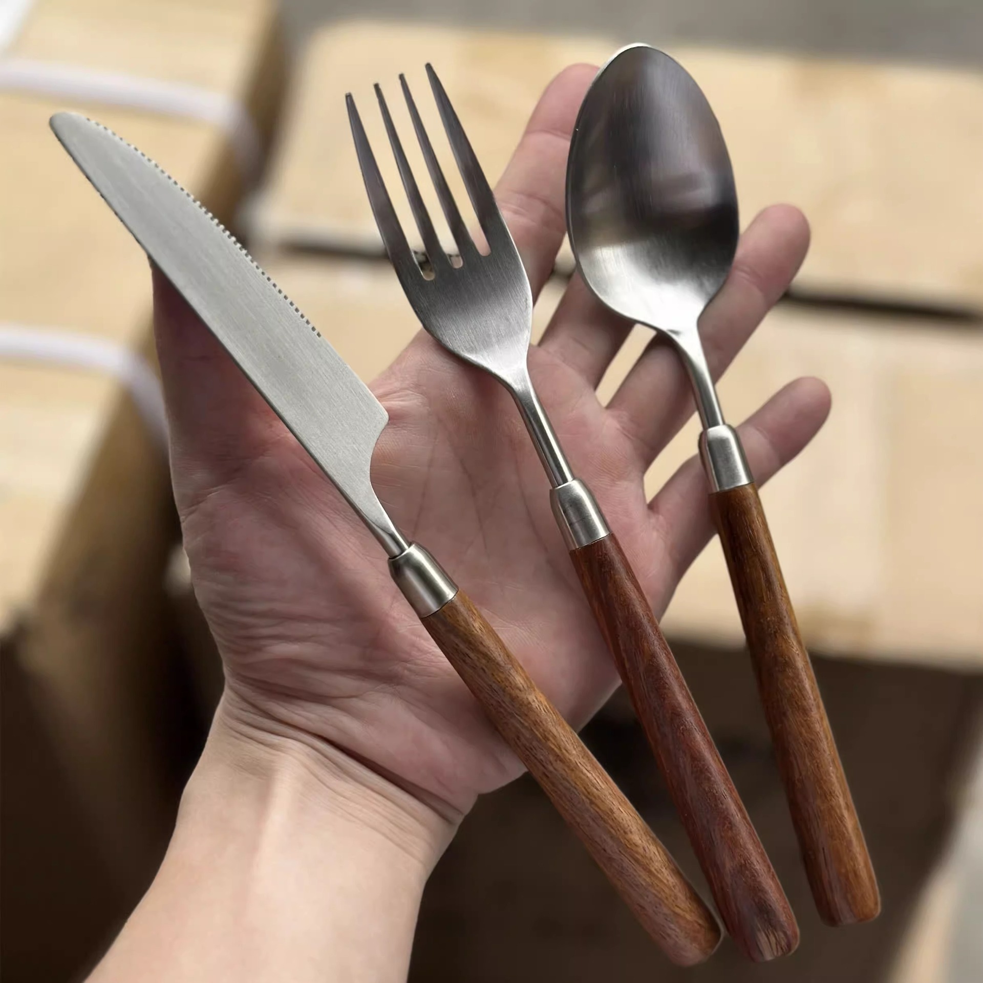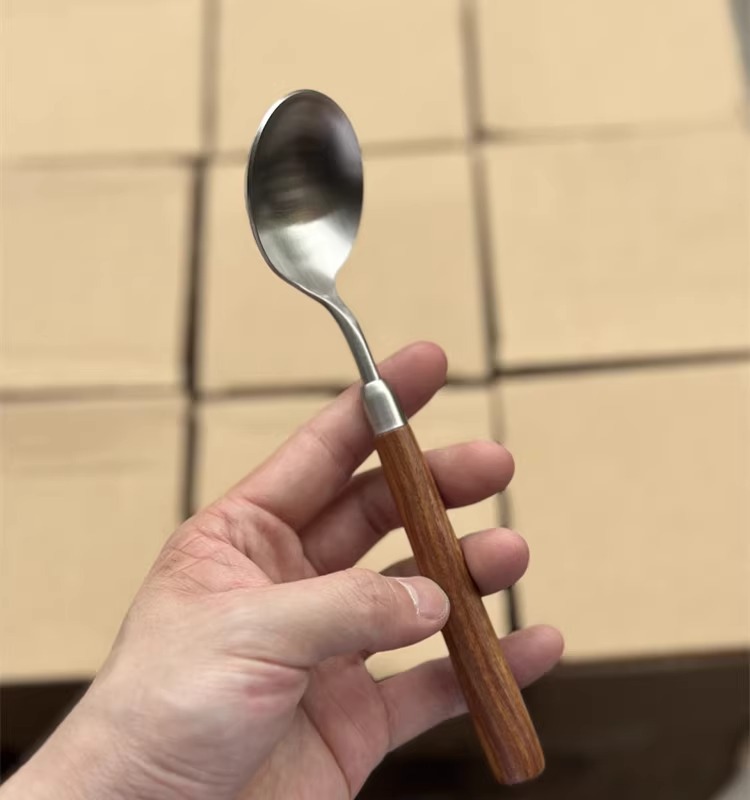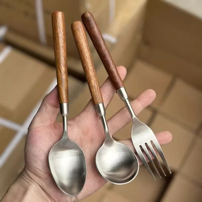 Stainless steel wooden handle tableware, Western style knife, high-end feeling, imitation walnut spoon, soup, dinner, steak fork set