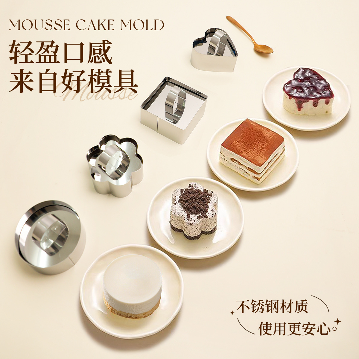 Stainless steel love mousse ring pudding mold with platen Rice and vegetable roll tool dessert tiramisu cake mold