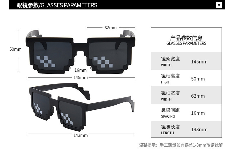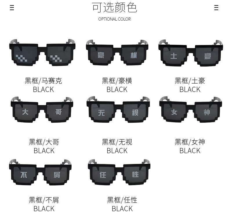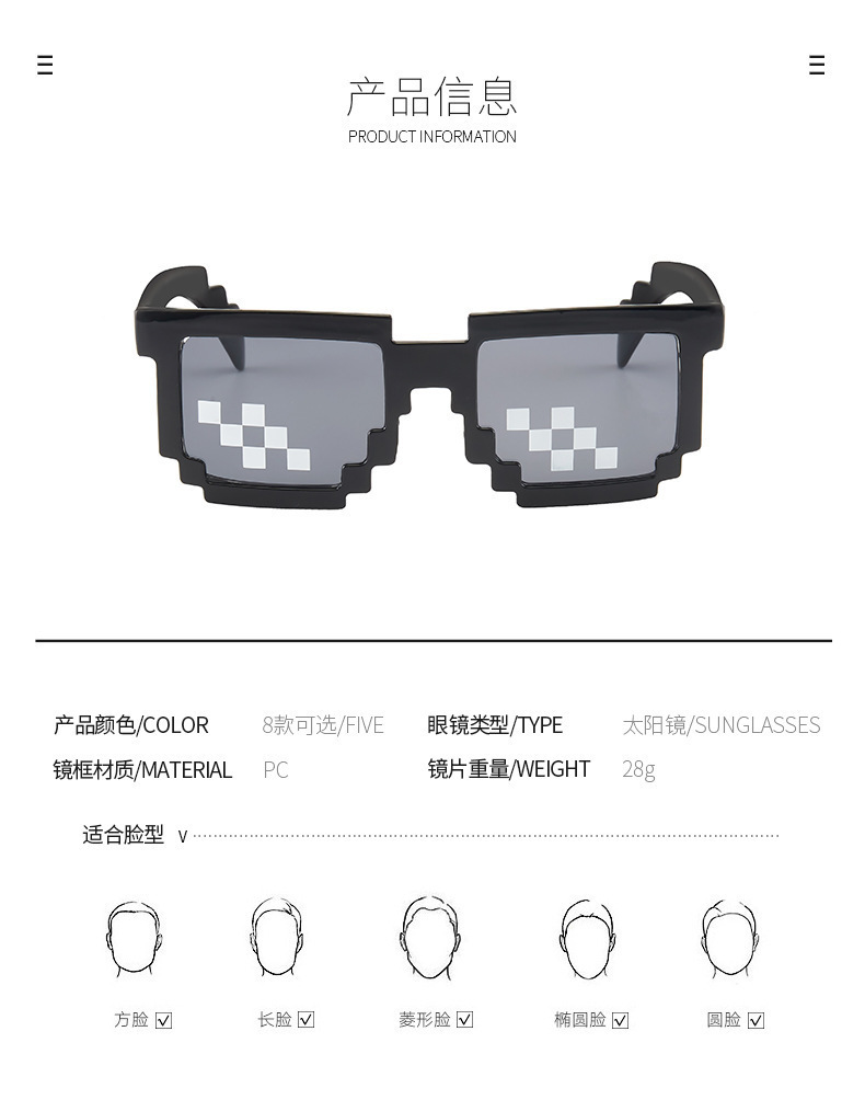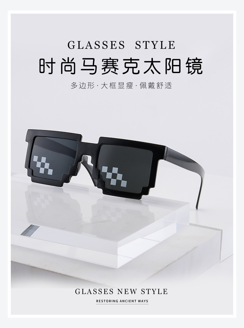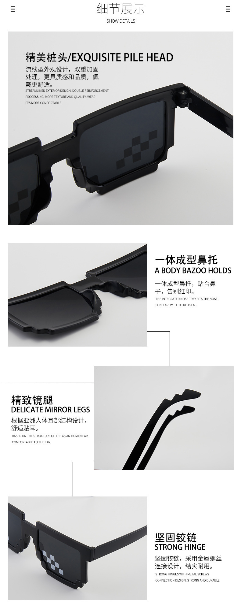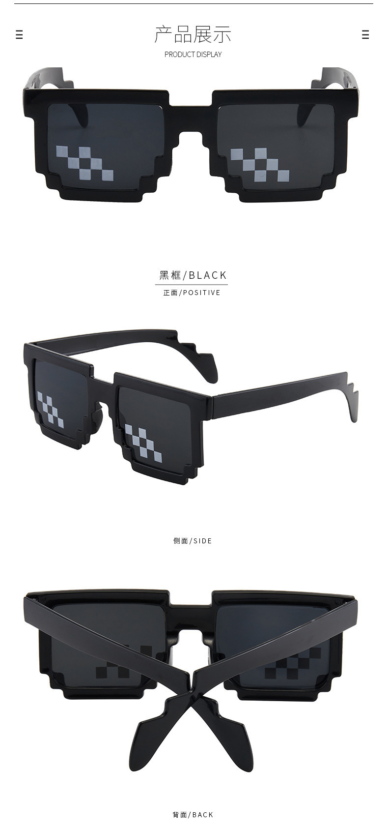 Male and female internet celebrities mosaic party glasses funny artifact student performance black sunglasses personality pixel sunglasses
