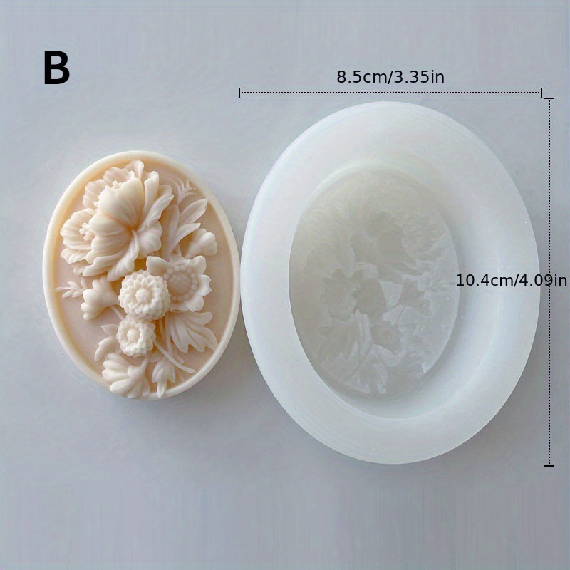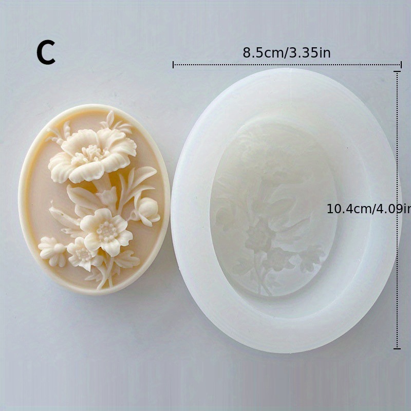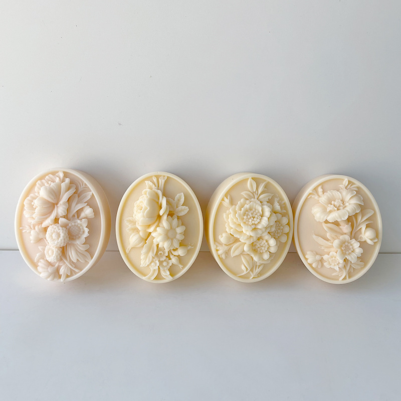 Embossed flower silicone soap mold DIY oval expansion car fragrance brand gypsum mold decoration baking utensils