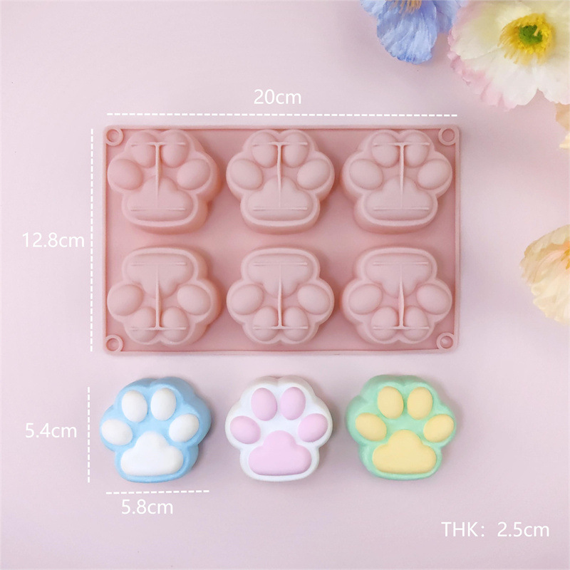 6-in-a-row small and large cat paw silicone mold, chocolate mousse cake mold, handmade soap dropper glue kneading mold