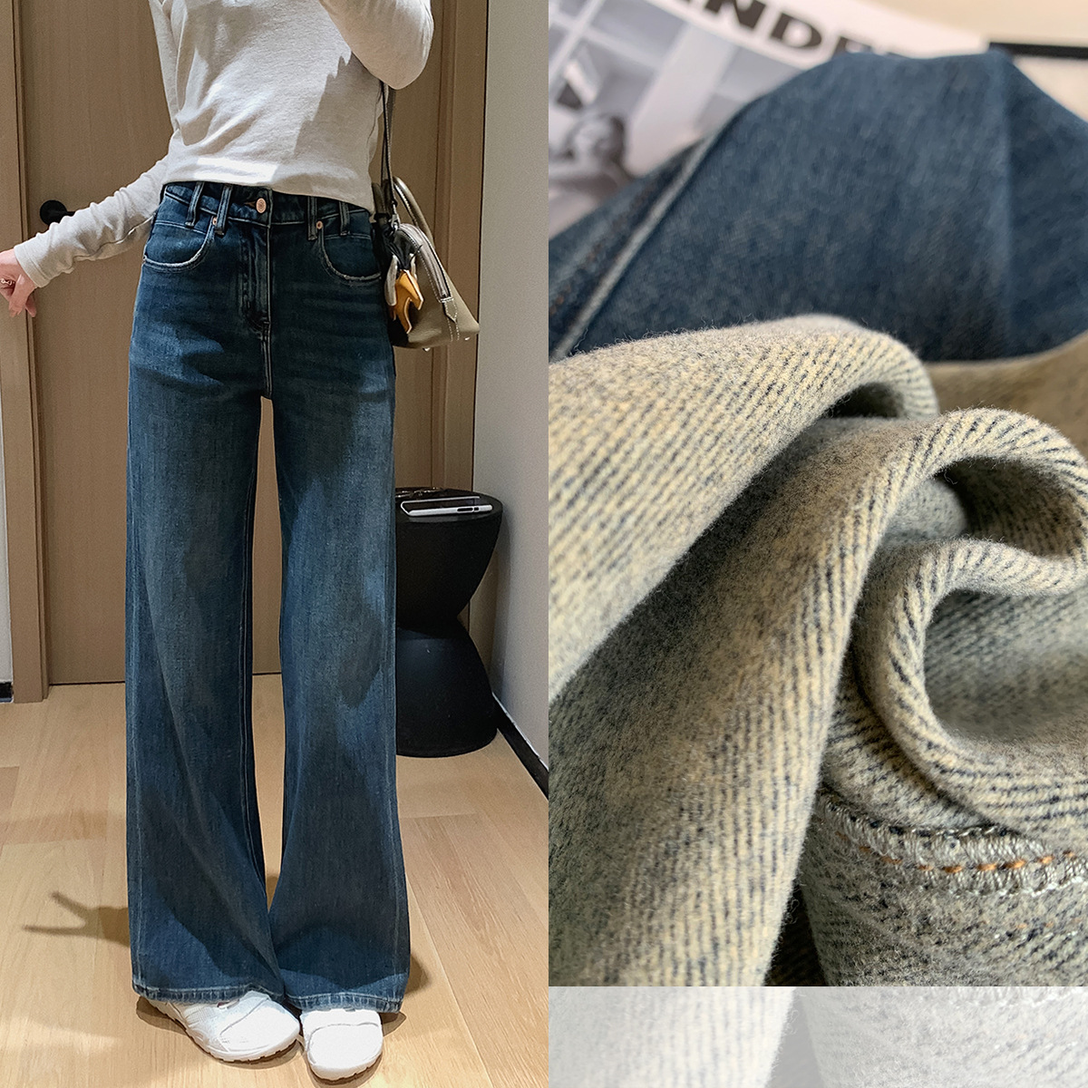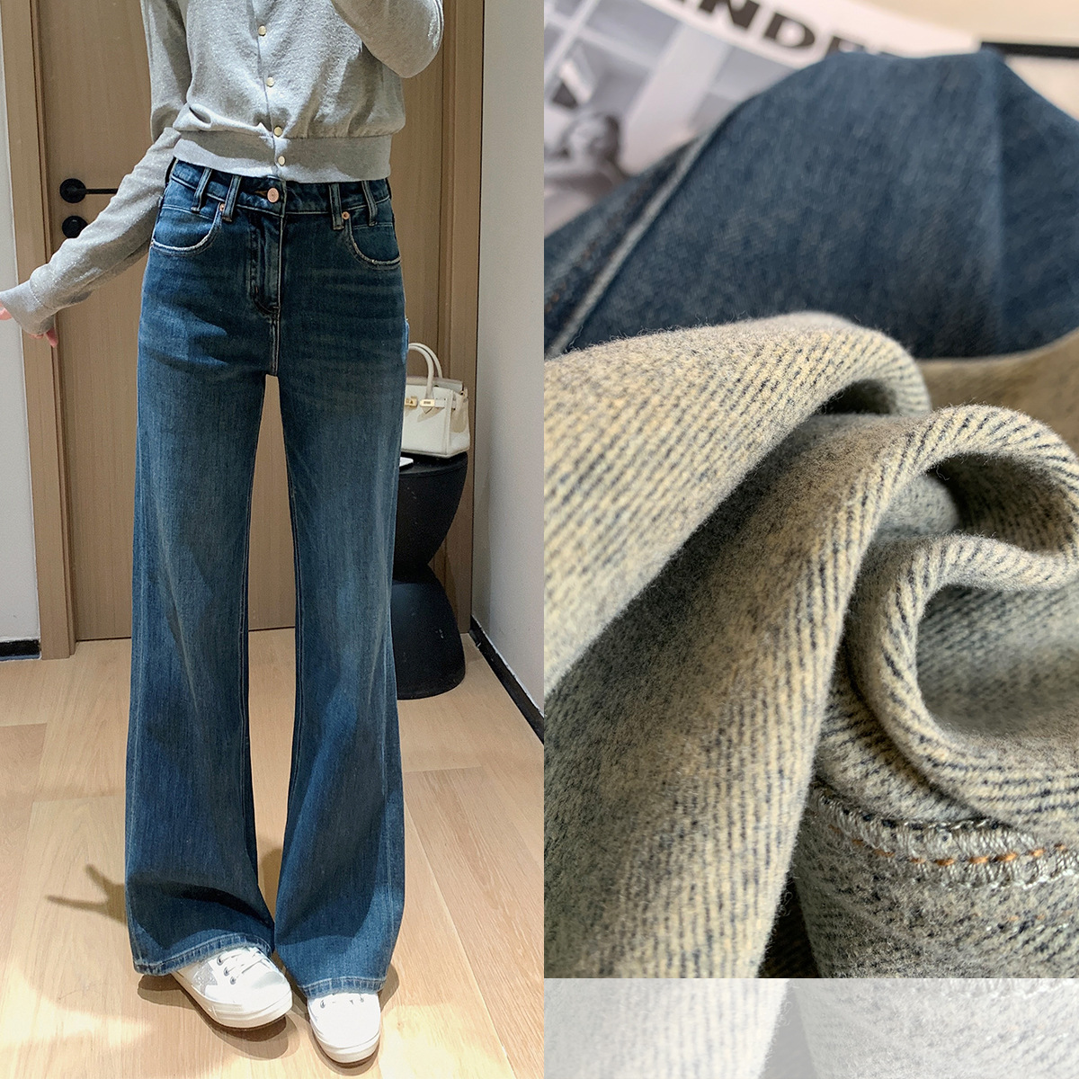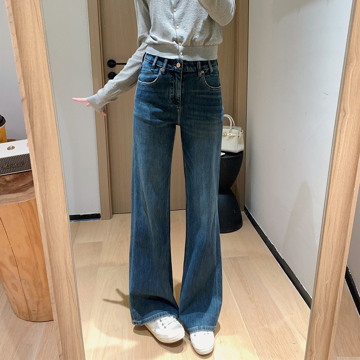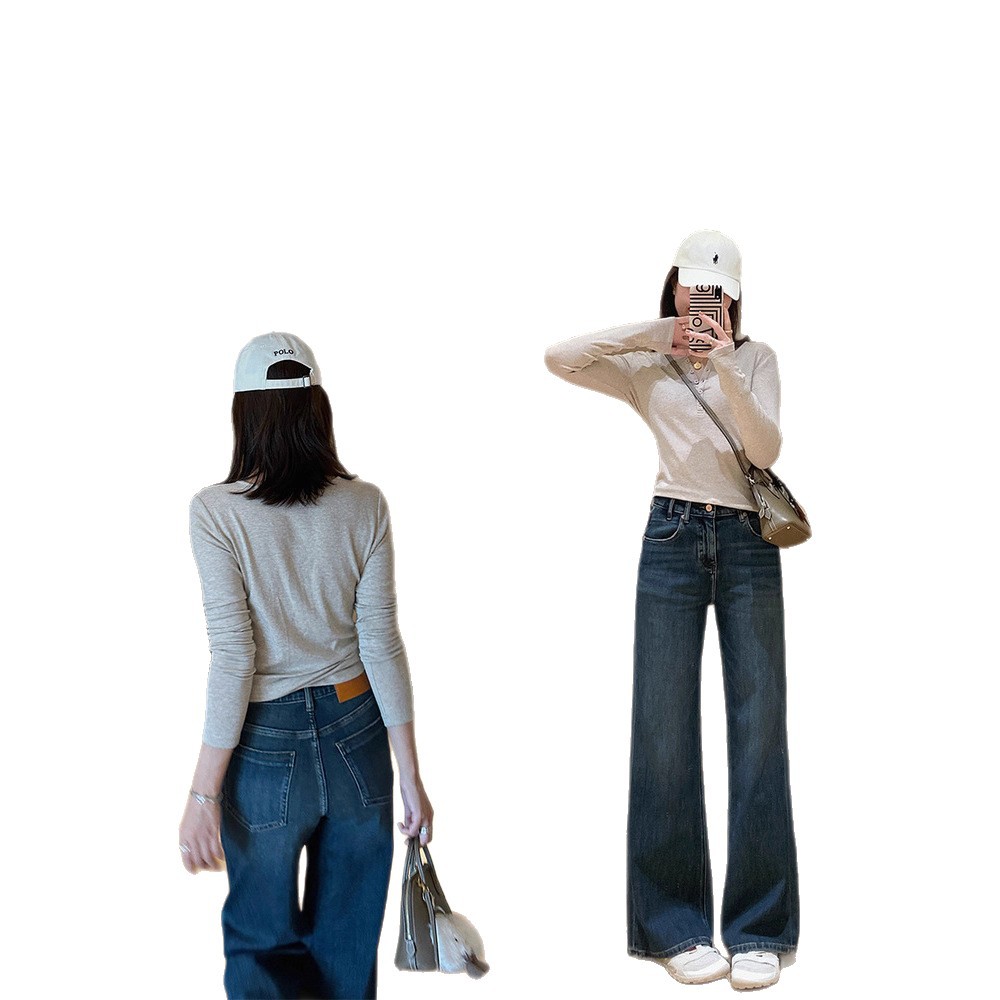 Spring is never too late for modeling pants! Recommended dual version fermented hand wash, cat whisker, slightly flared pants, retro wide leg jeans for women