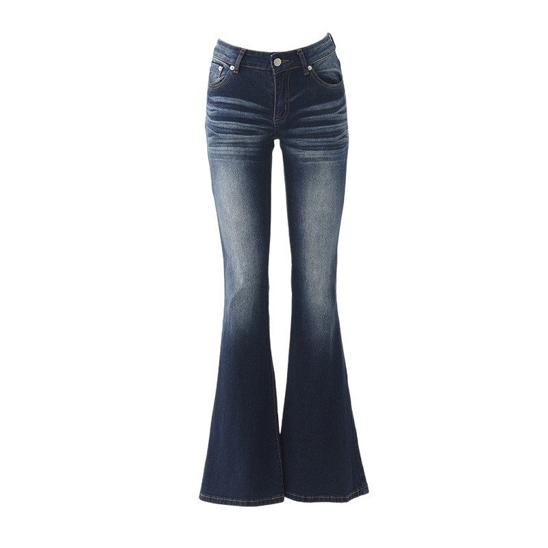 Spicy Hong Kong style retro dark blue micro flared jeans for women with stretch, low waist, slim fit and versatile spicy flared pants