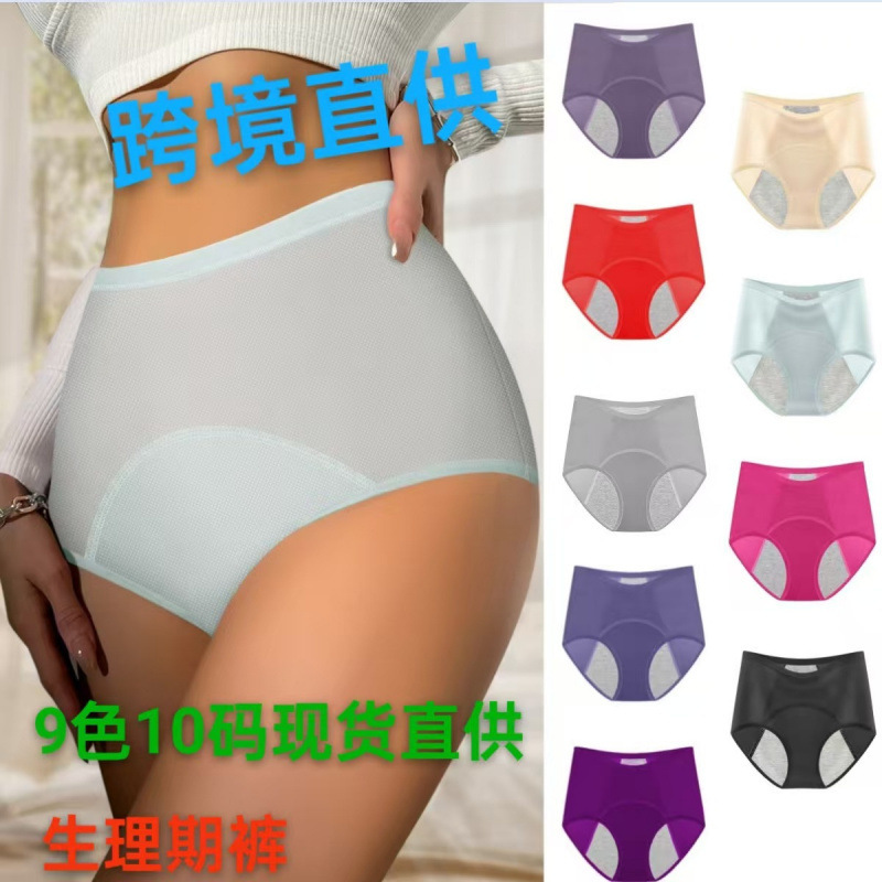 Foreign trade women's physiological underwear, leak proof during menstruation, medium high waist mesh, menstrual hygiene pants, size 200-300 pounds