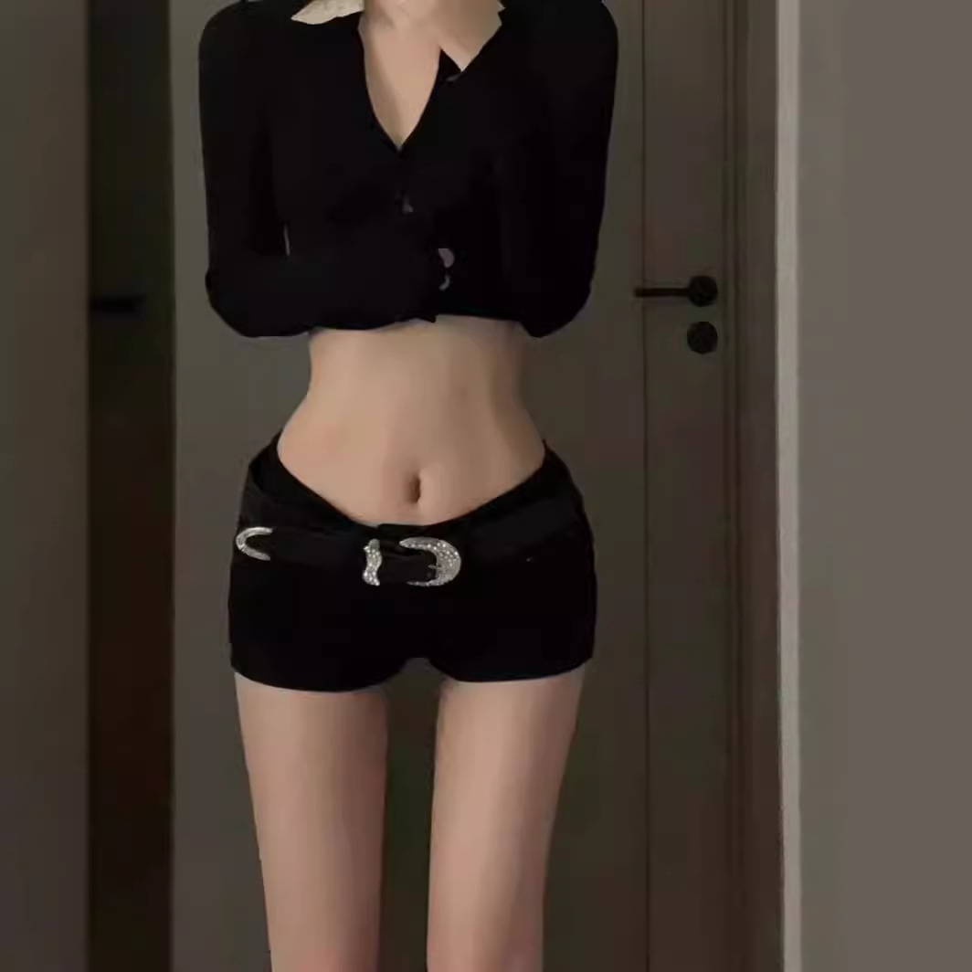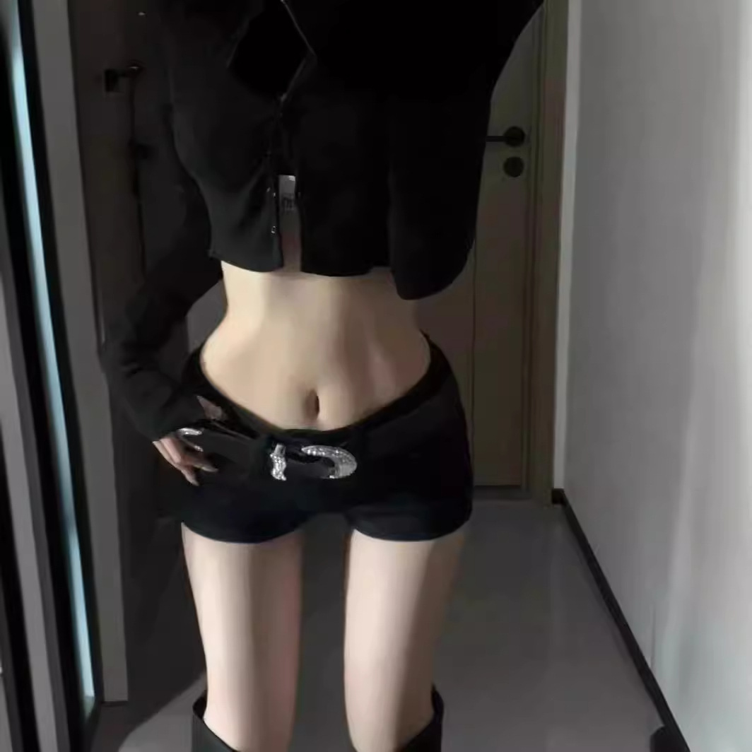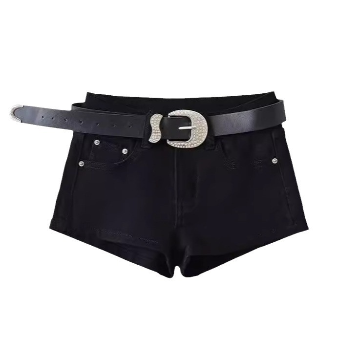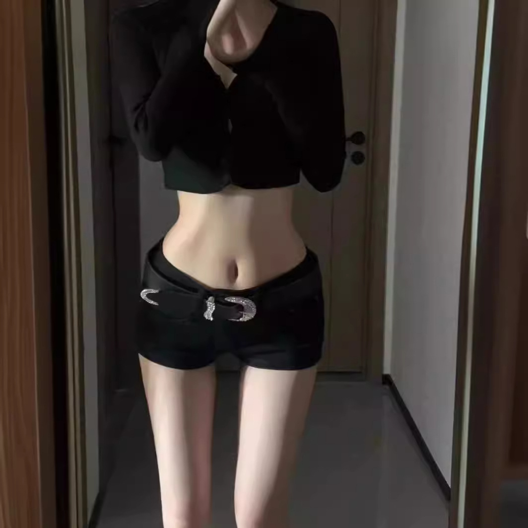 American style spicy girl low waist tight elastic denim shorts for women's summer new style slim fit and wide leg wrapped hot pants
