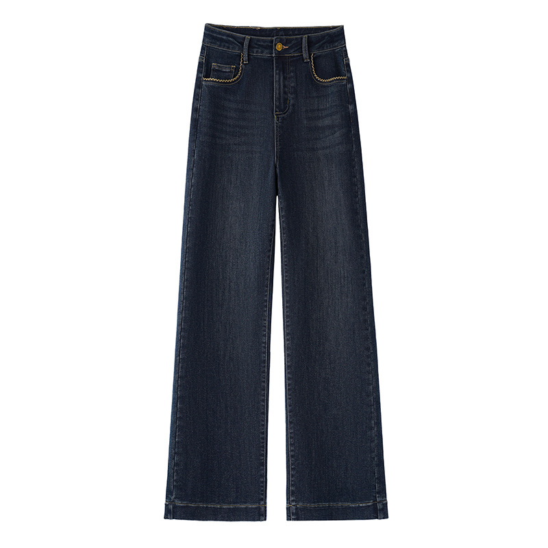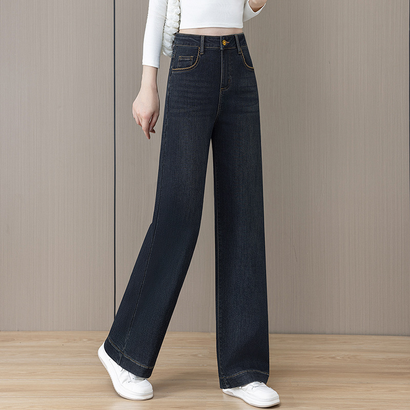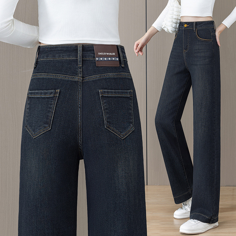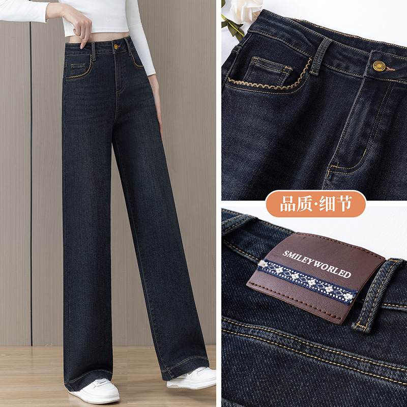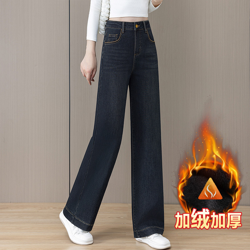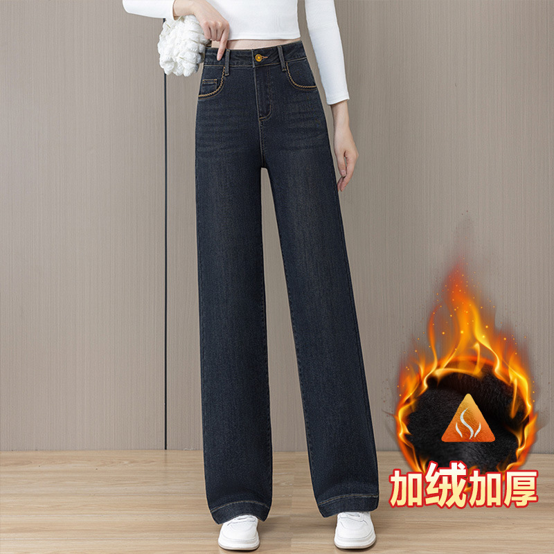 Straight leg jeans for women in winter, with thick fleece, high waist, loose fit, plus size, small and narrow fit, hanging and wide leg pants