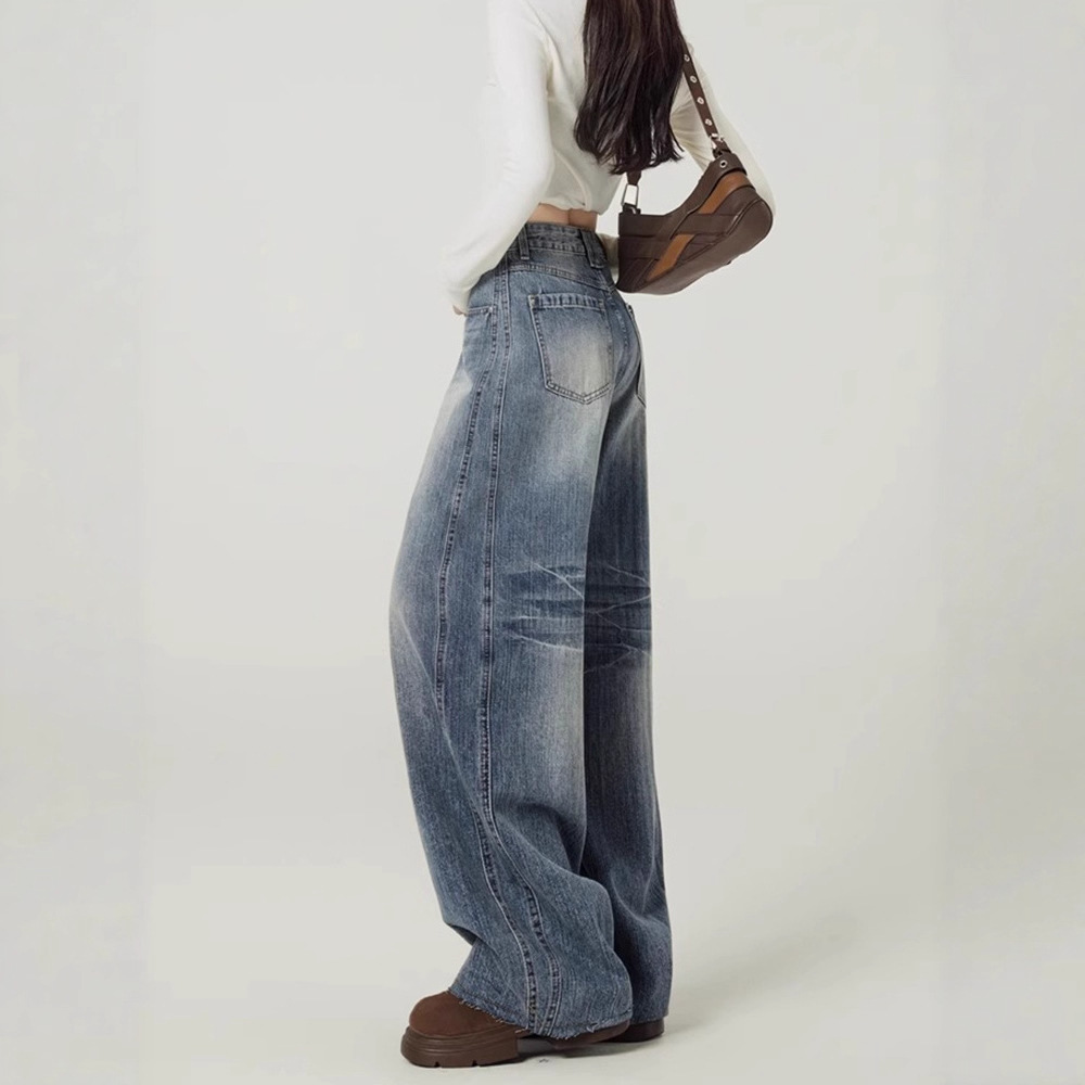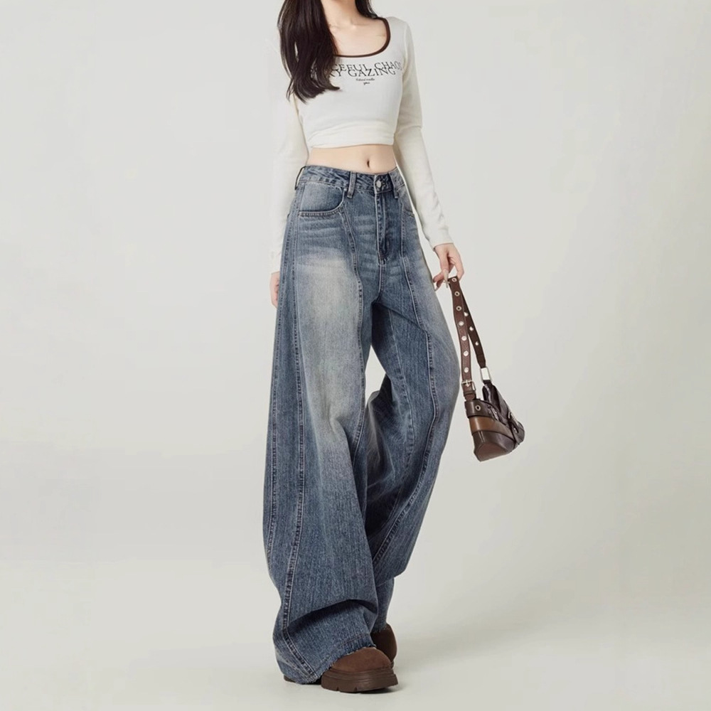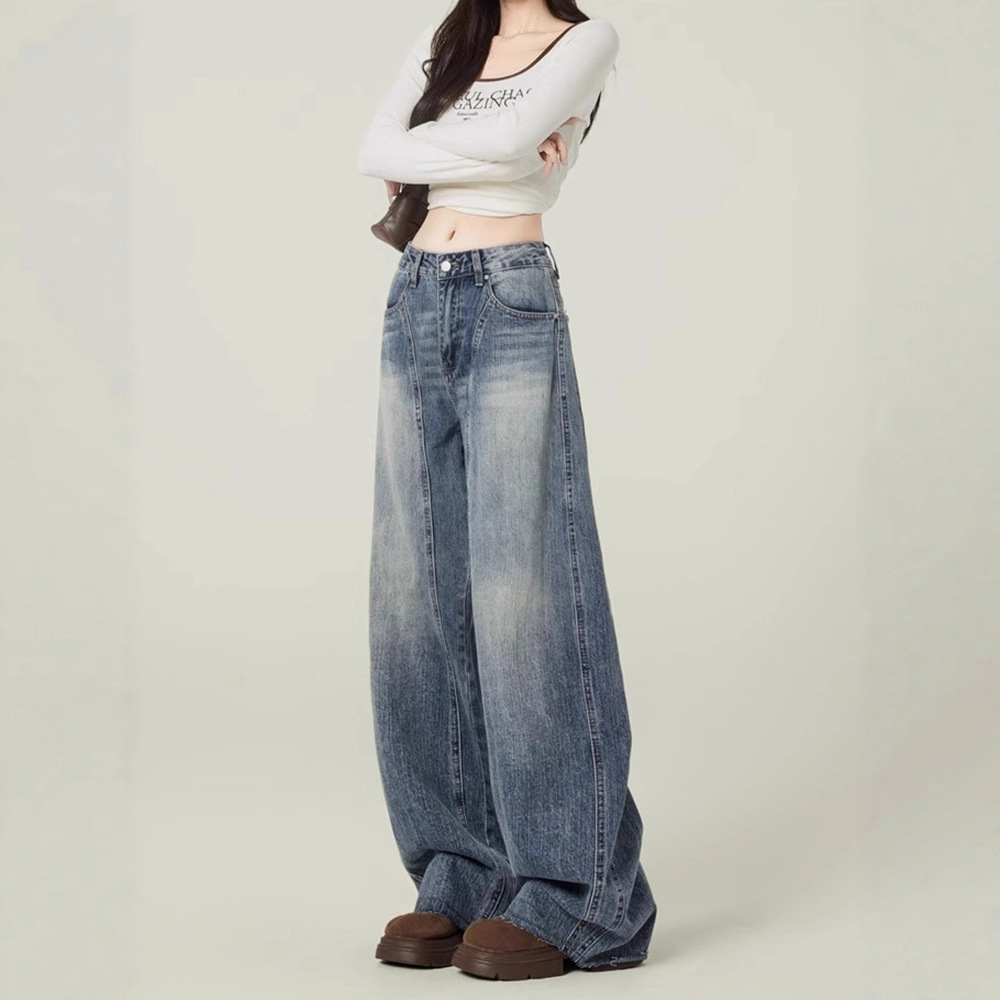 Ретро - синие джинсы с широкими ногами, женские осенние тренды, новые дизайнерские брюки с высоким наклоном, мачете.