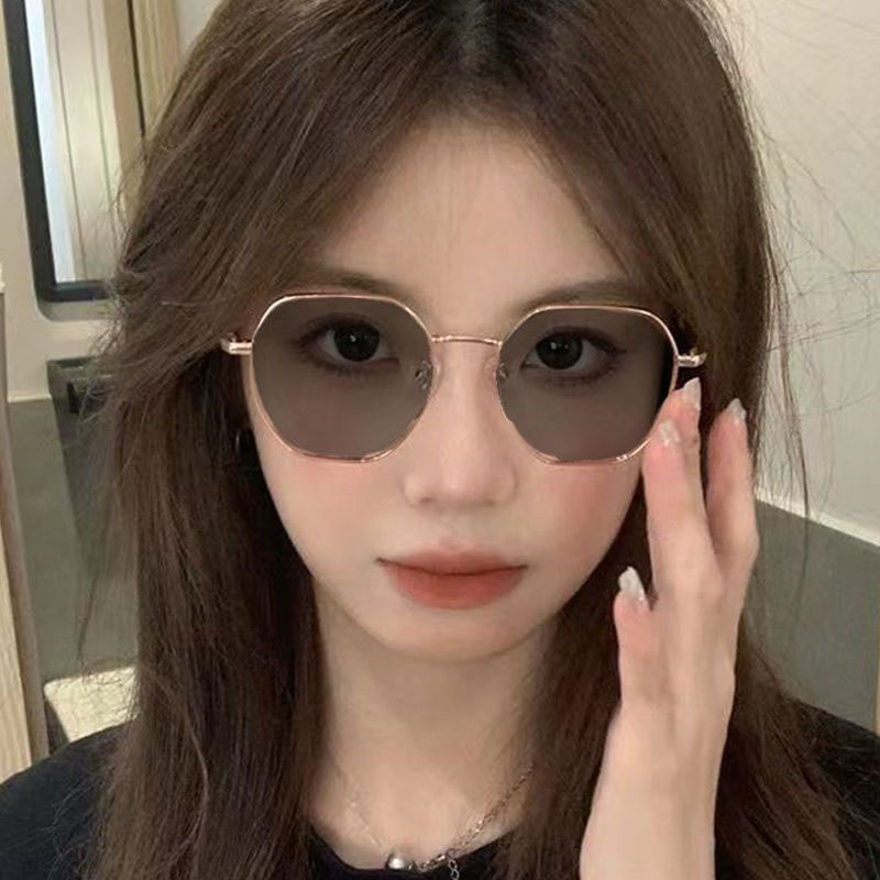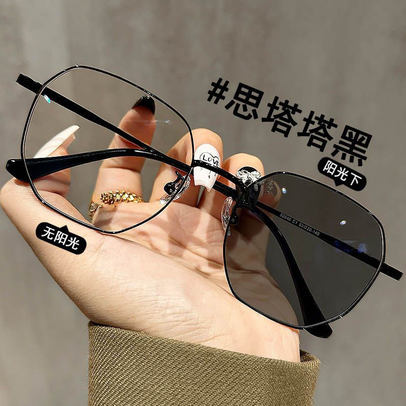 Golden wire color changing myopia glasses for small face, plain face, square anti blue light flat lens, large frame, prescription sunglasses for women