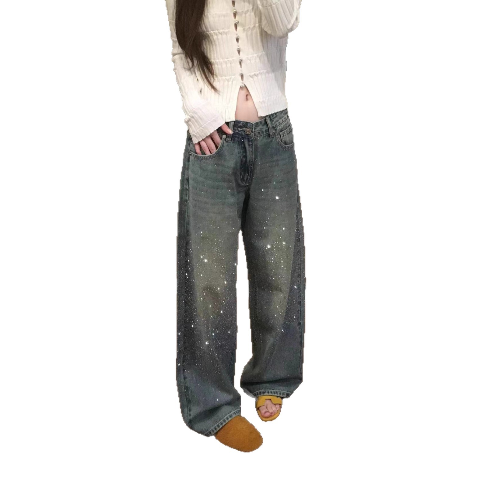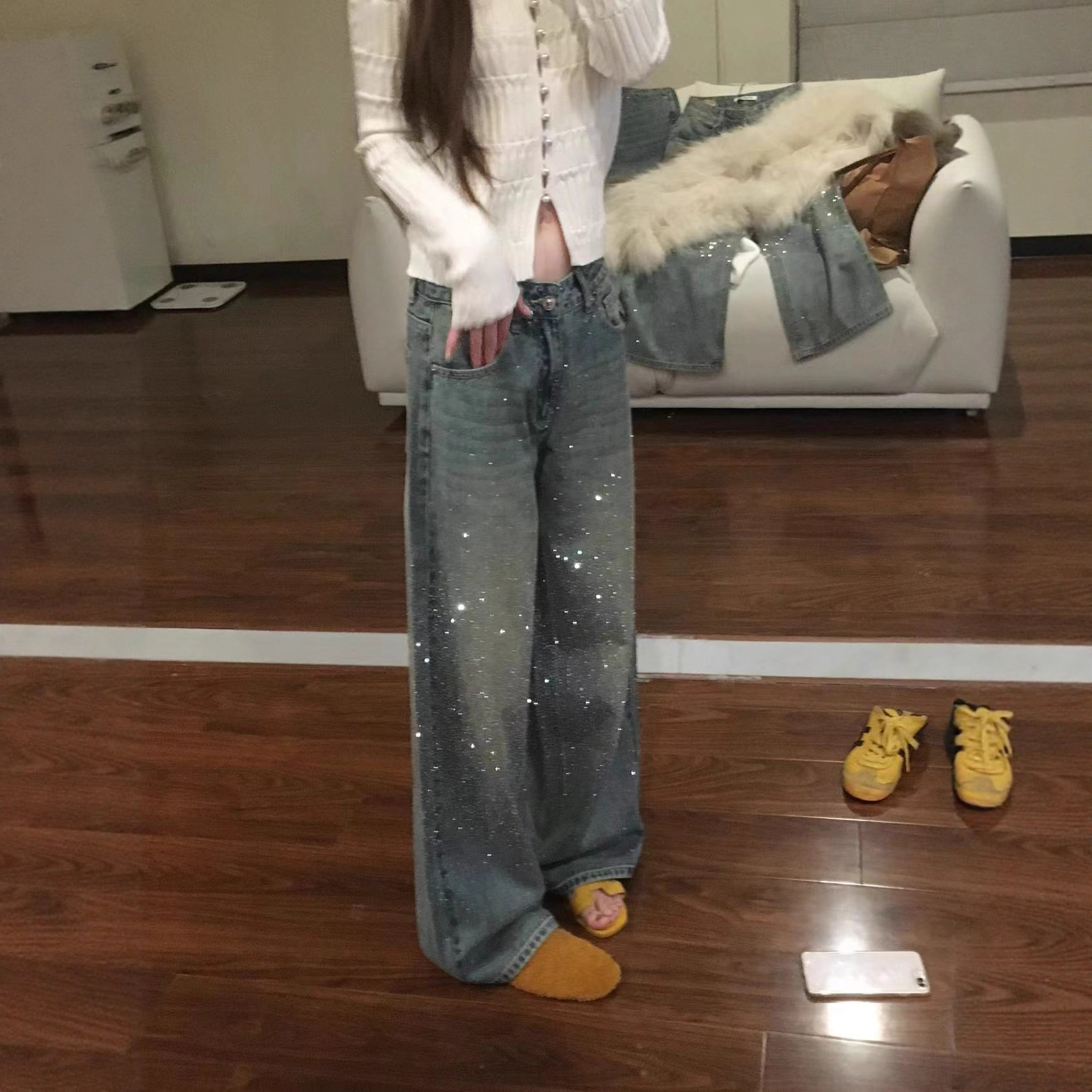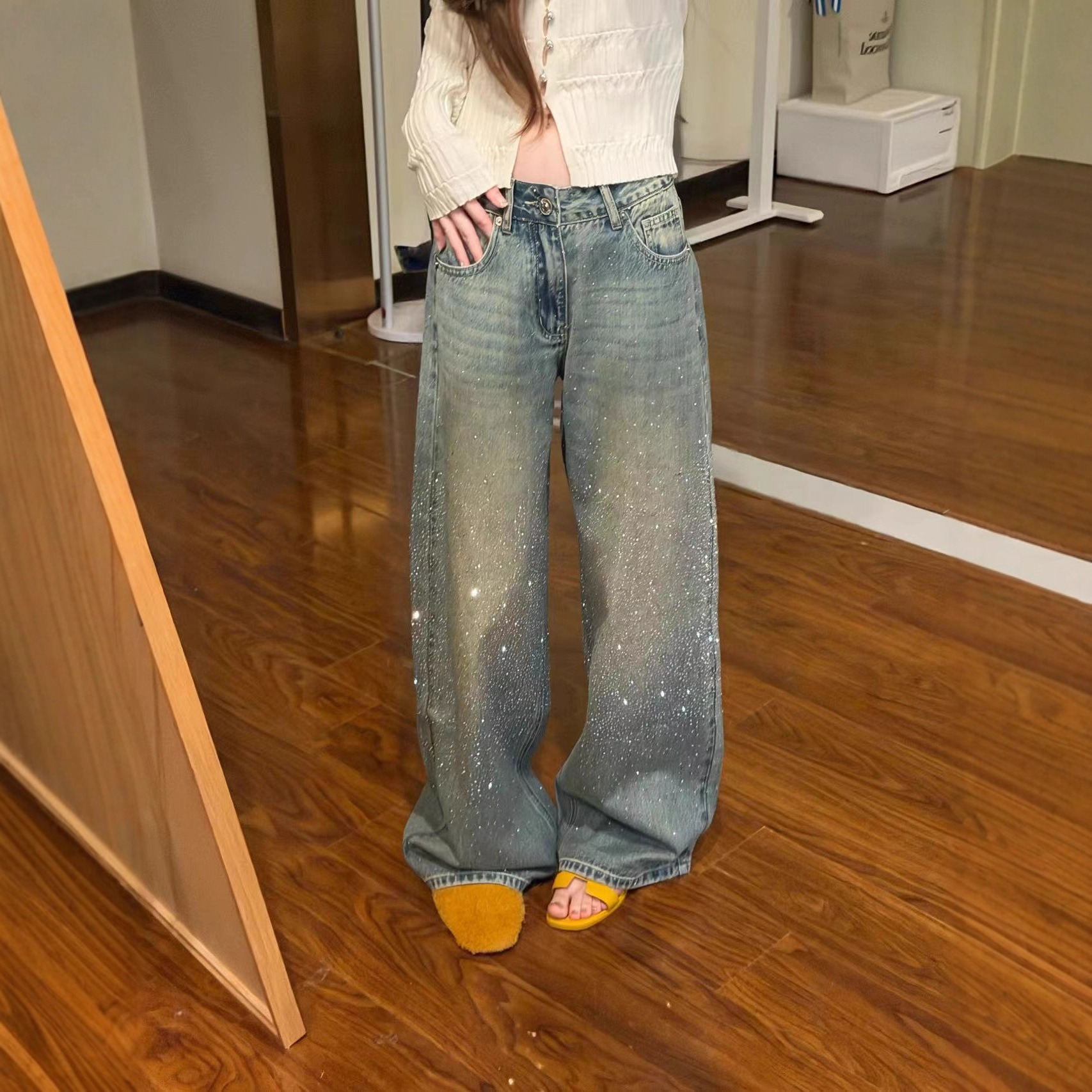Mantianxing Hot Diamond Heavy Industry Jeans Women's Autumn New Design Feel Loose Straight Leg Wide Leg Pants A9150