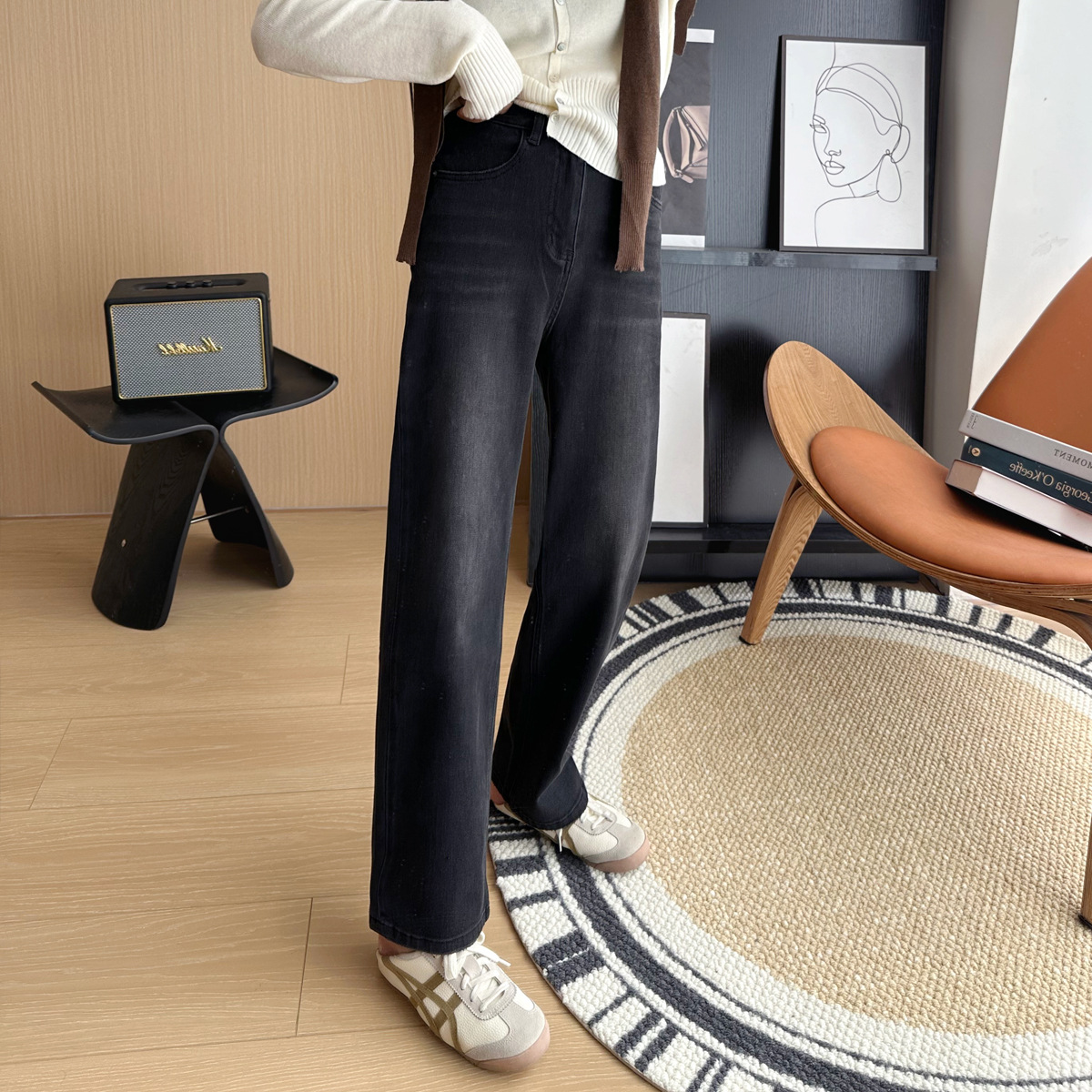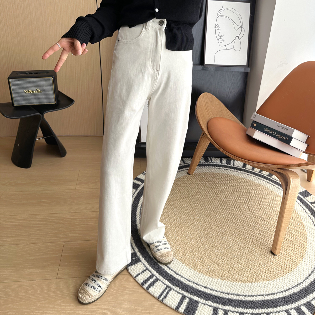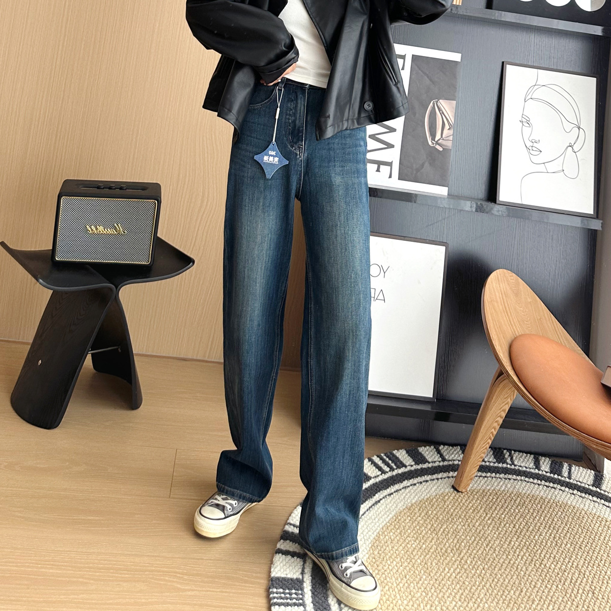 Закройте глаза в серии! В этом году новые четырехзарядные весенние джинсы женская узкая версия показывает худые ноги прямые брюки с широкими ногами
