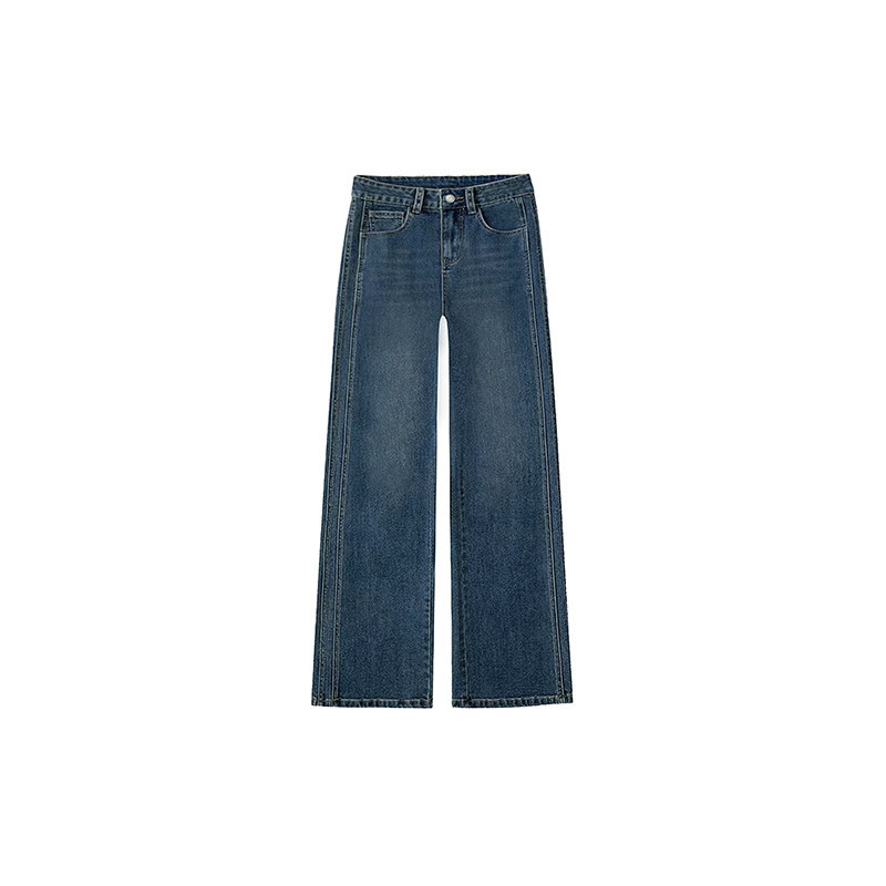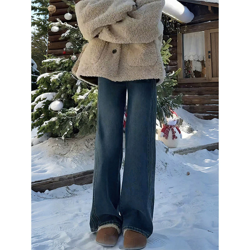 Retro Blue Wide Leg Jeans for Women Autumn/Winter with Velvet, Fat Sister, MM Pear Shaped Body, High Waist, Loose, Skinny, Straight Leg Pants