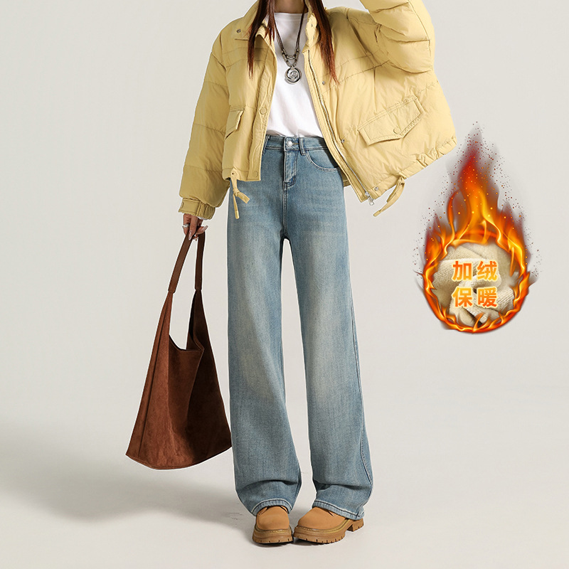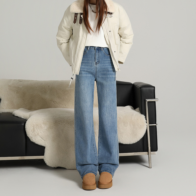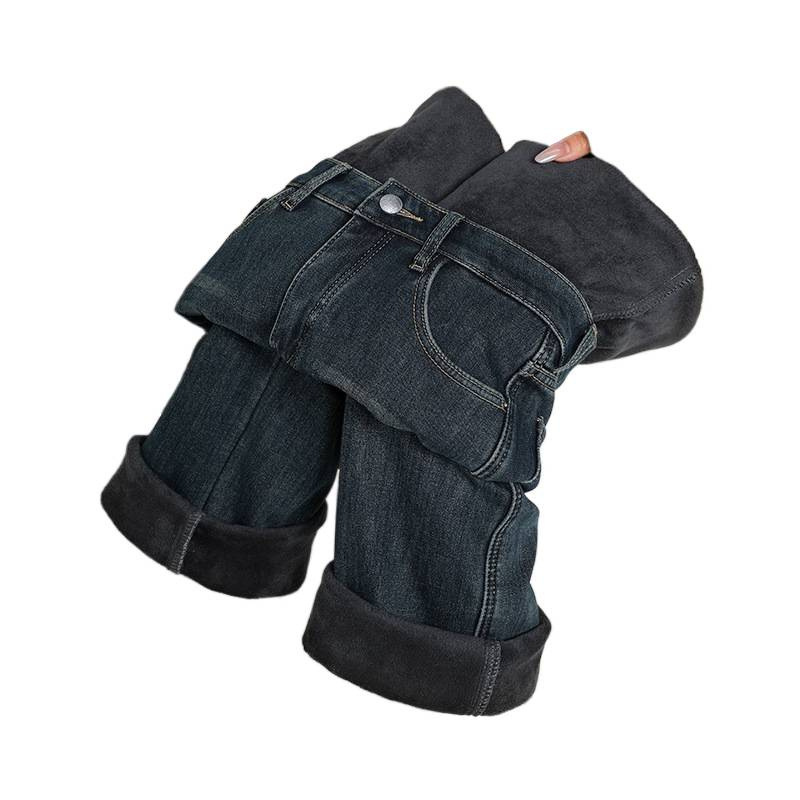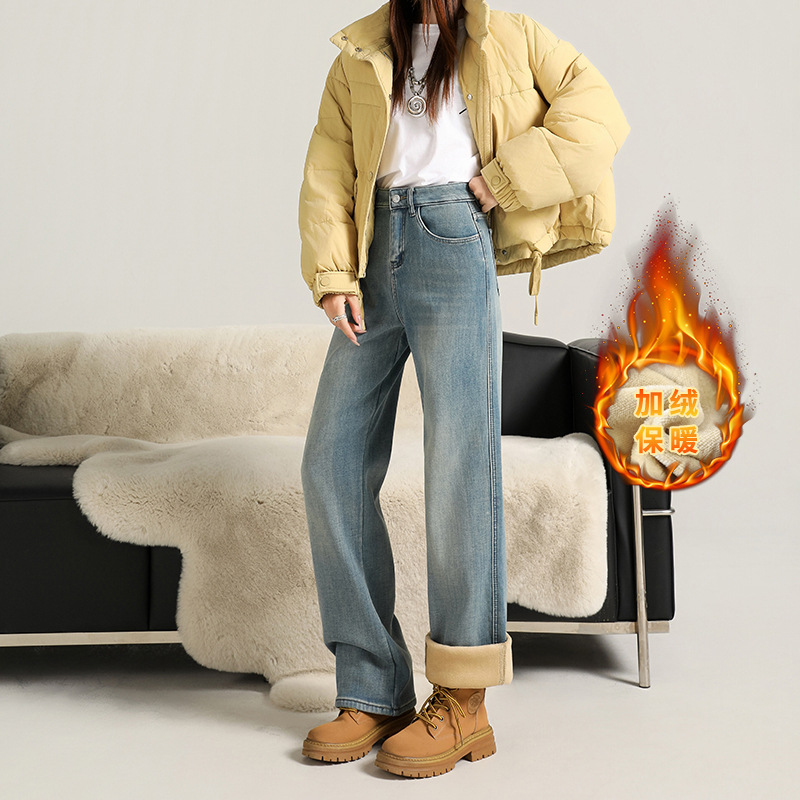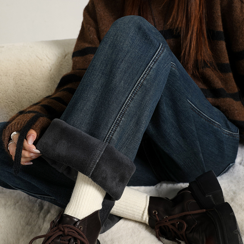 Velvet warm ultra soft elastic narrow wide straight tube hanging smooth classic versatile loose comfortable jeans women's autumn thick style