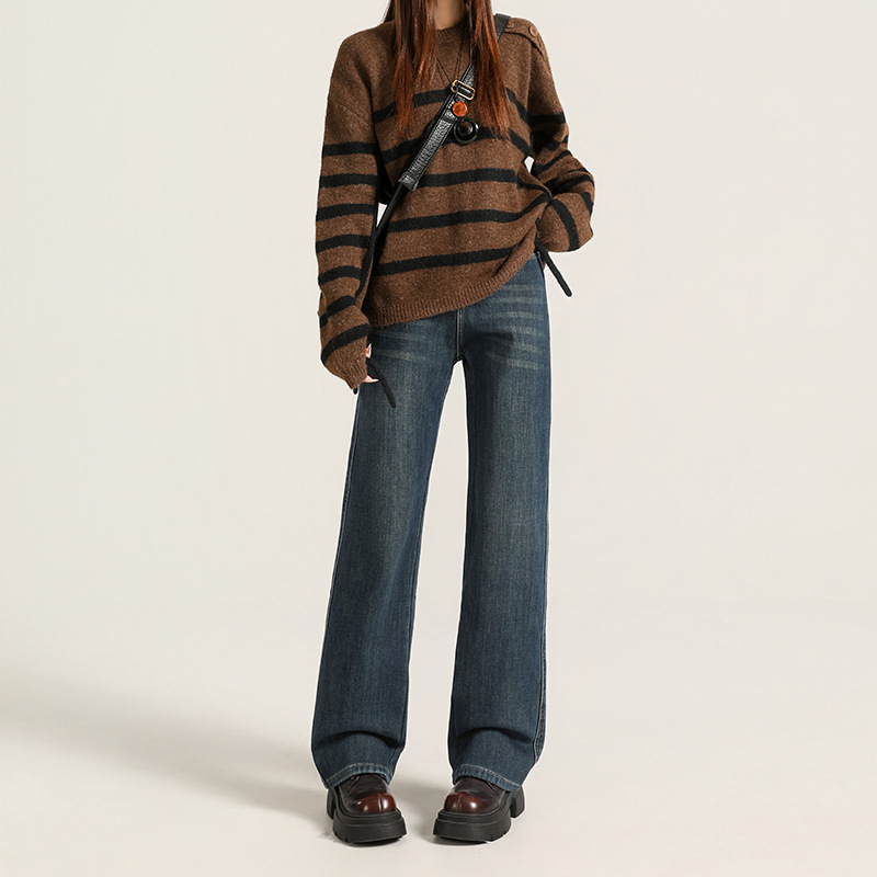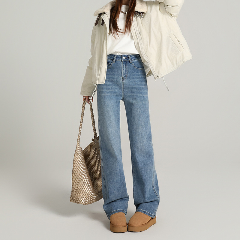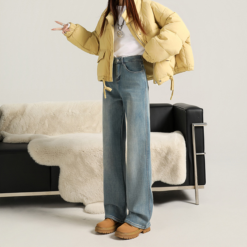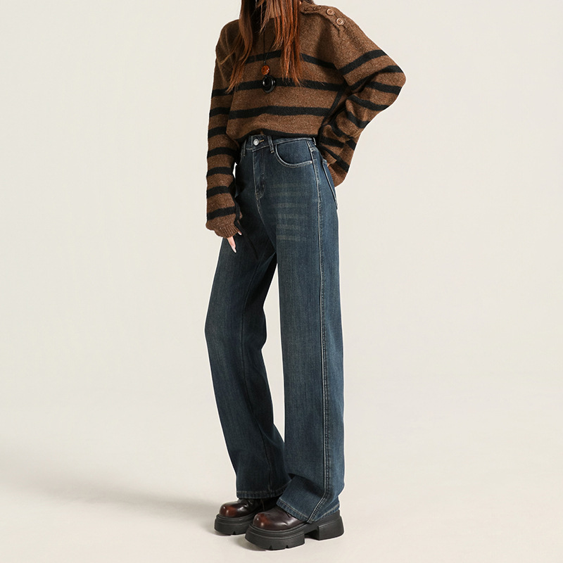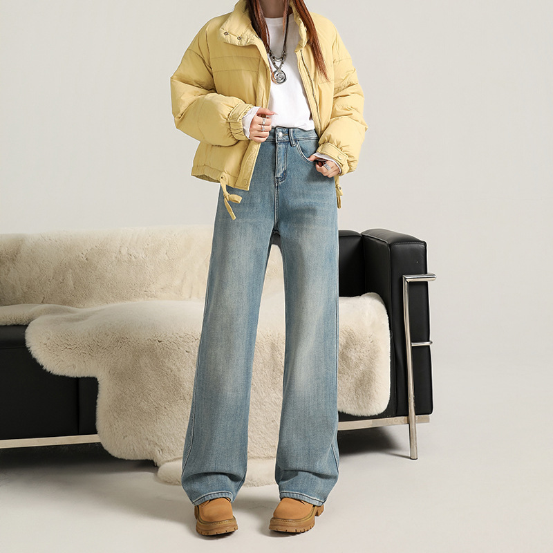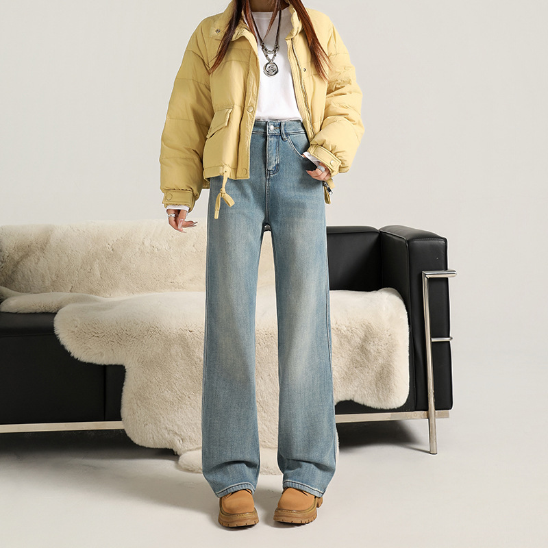 Velvet warm ultra soft elastic narrow wide straight tube hanging smooth classic versatile loose comfortable jeans women's autumn thick style