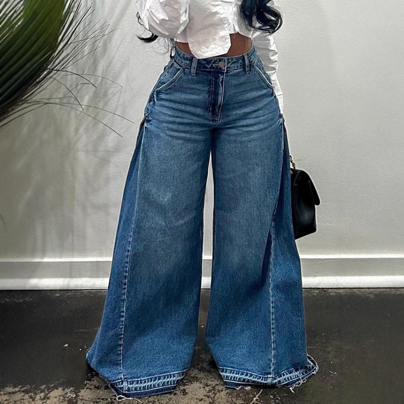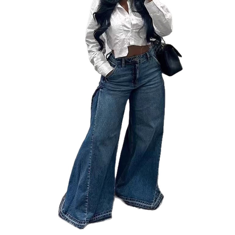Трансграничные европейские и американские винтажные джинсы с широкими ногами женские Y2K дизайнерские брюки