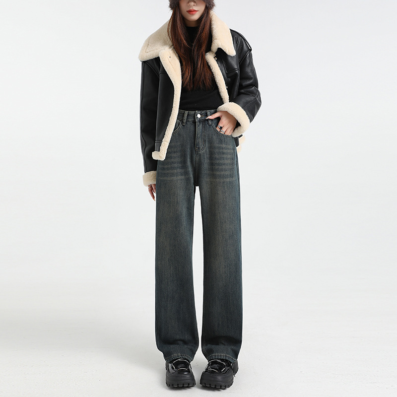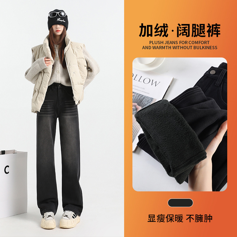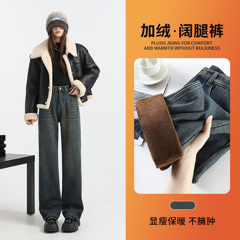 Velvet wide leg jeans for women in autumn and winter, velvet jeans for women in high waisted pants for children in autumn and winter, velvet wide leg pants for women in autumn and winter