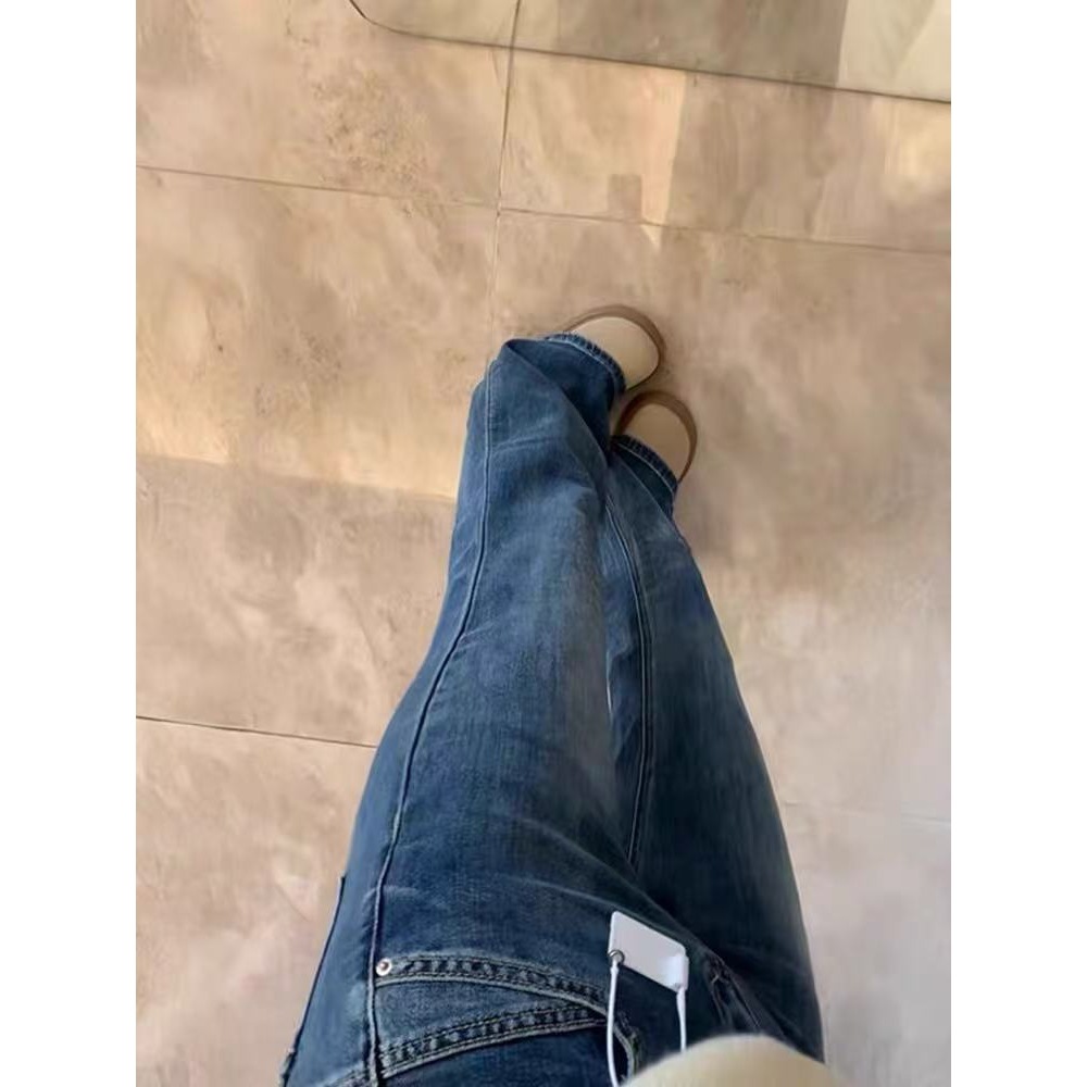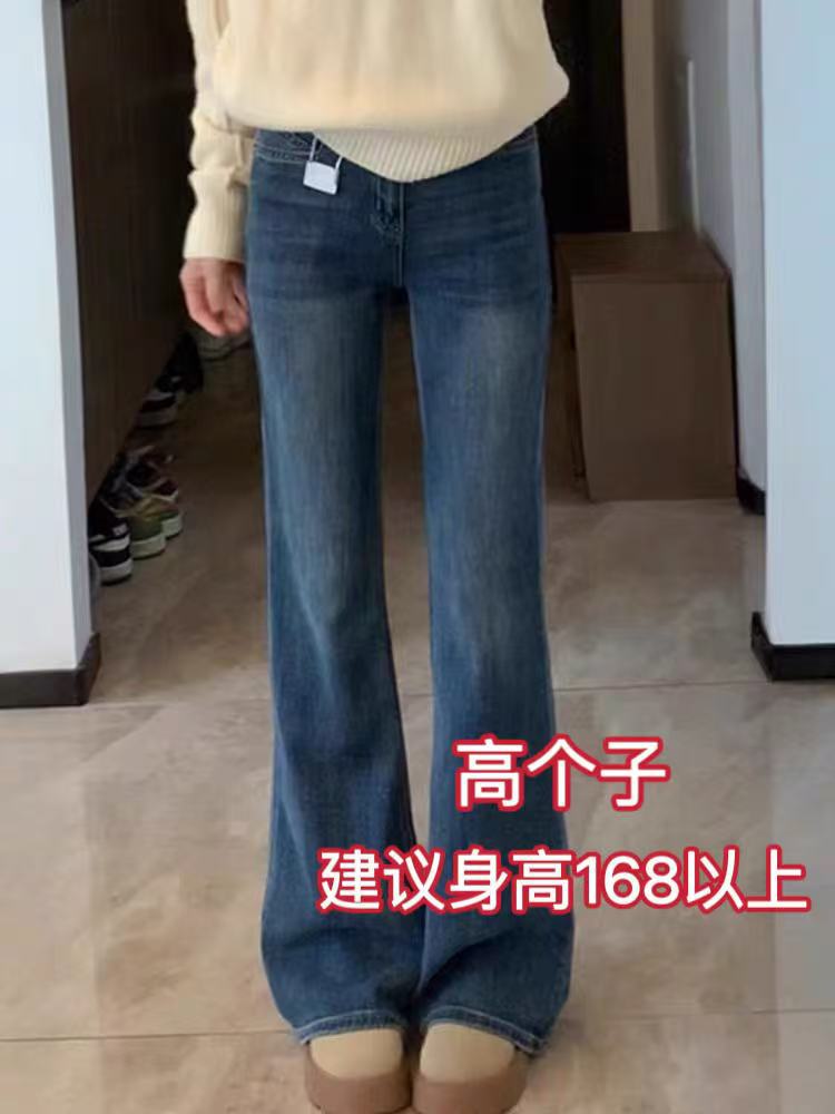 Micro flared straight leg jeans for women in autumn 2025, plus plus size, fat, mm, high waist, elastic coverage, slimming effect, horseshoe horn pants