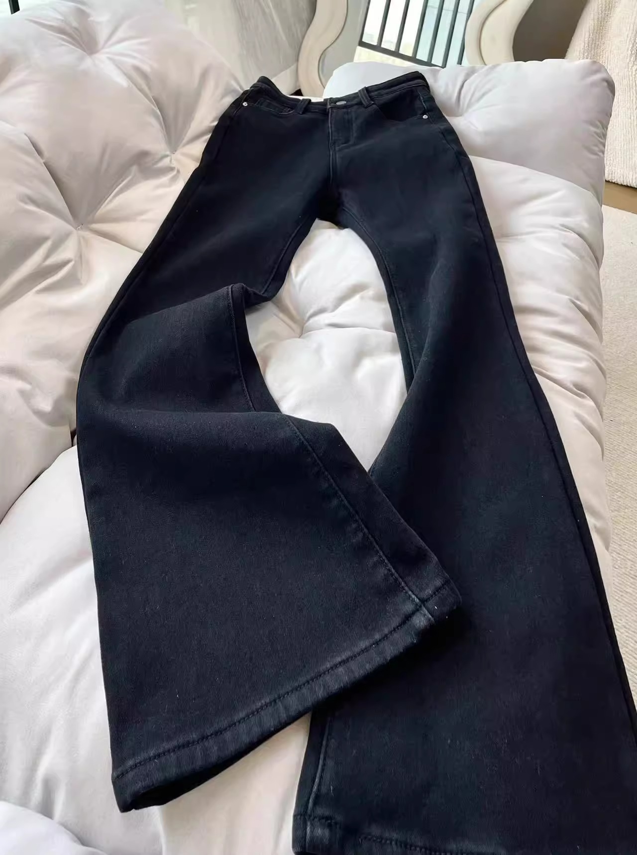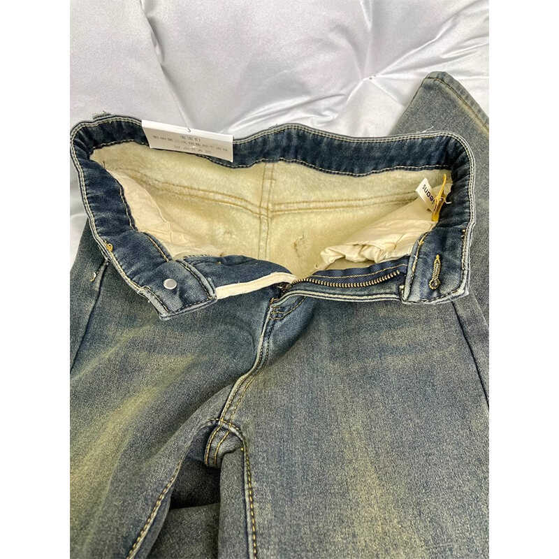 Velvet thickened straight leg jeans for women, autumn/winter 2024 plus size, fat mm, high waist, crotch covering, elastic and slightly flared horseshoe pants