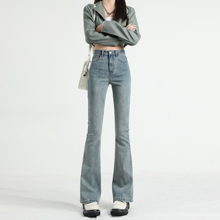 Высокая эластичность, винтажные брюки, брюки, джинсы, женские осенне - зимние, стройные, высокие подковы, тащили штаны.
