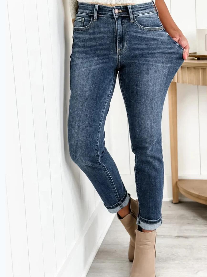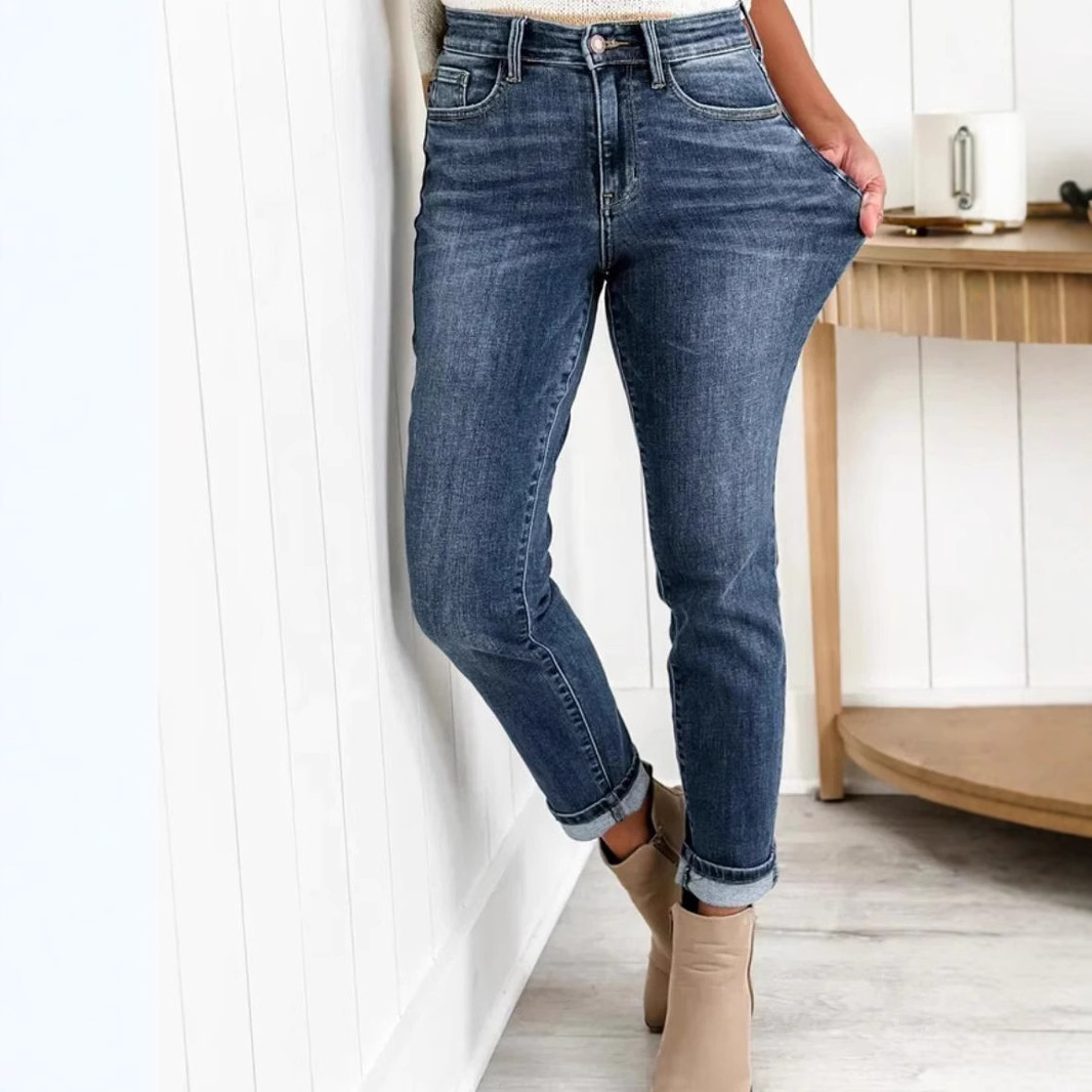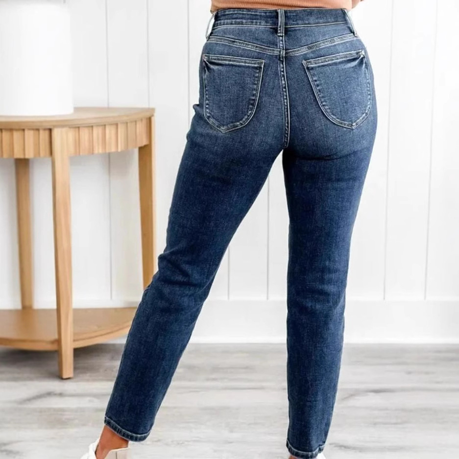 Amazon Independent Station Fashion Trend High Waist Elastic Leisure Outdoor Leg Show Long Women's Small Feet Slimming Jeans