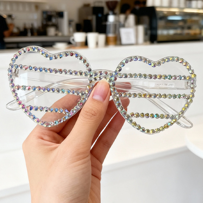 2025 New Cross border Amazon Love Frameless Diamond studded Fashion Sunglasses for Men and Women's Parties Funny Candy Sunglasses