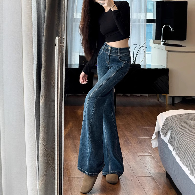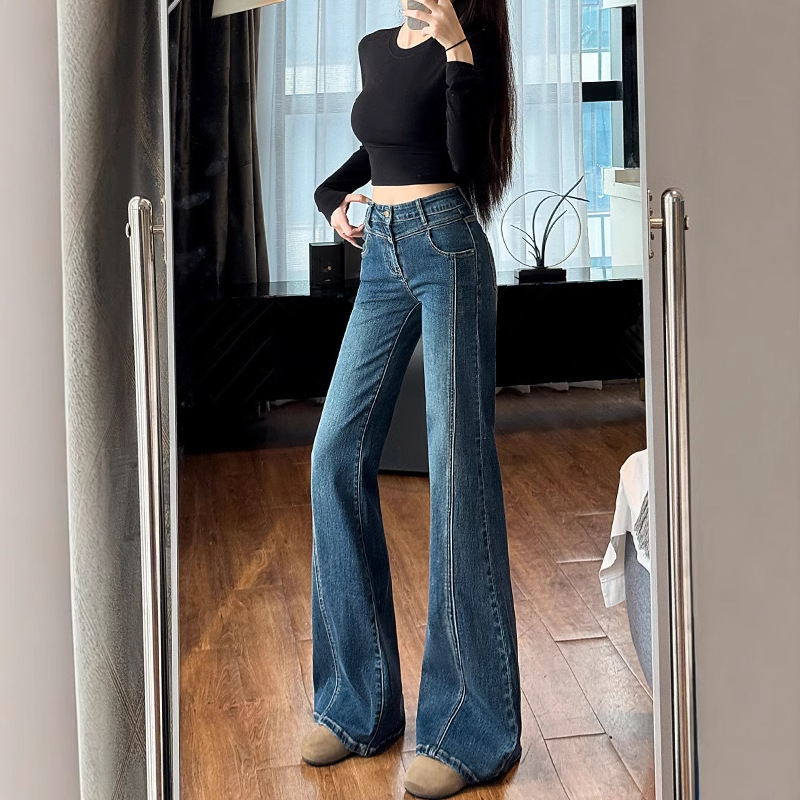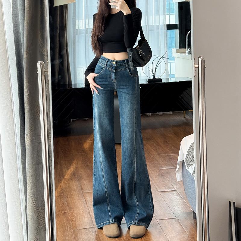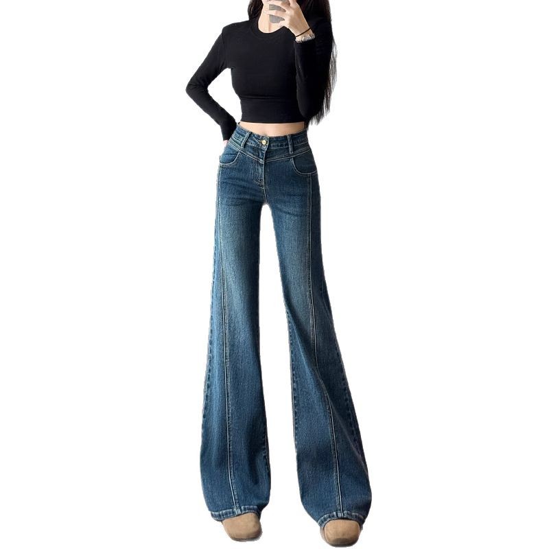 150 short American style micro flared retro jeans for women in spring, slim and stretchy high waisted straight leg wide leg floor pants