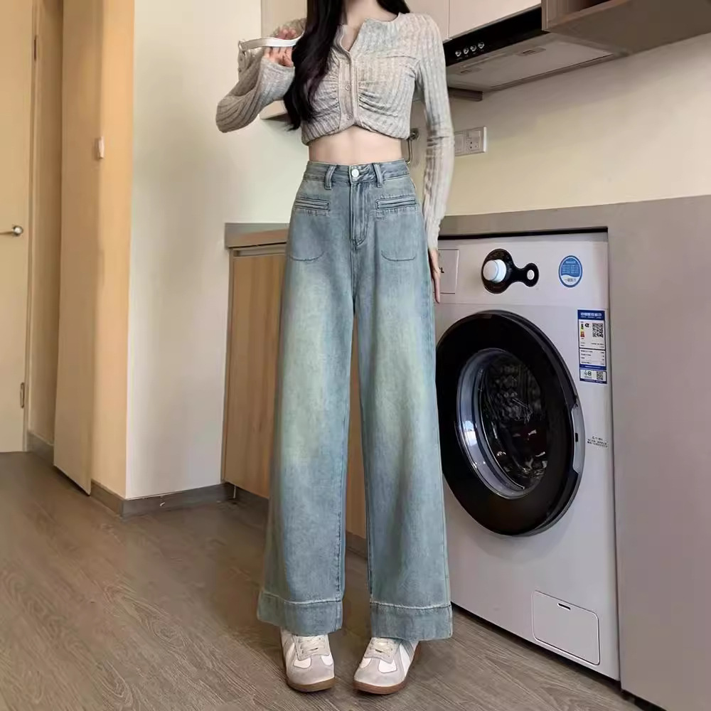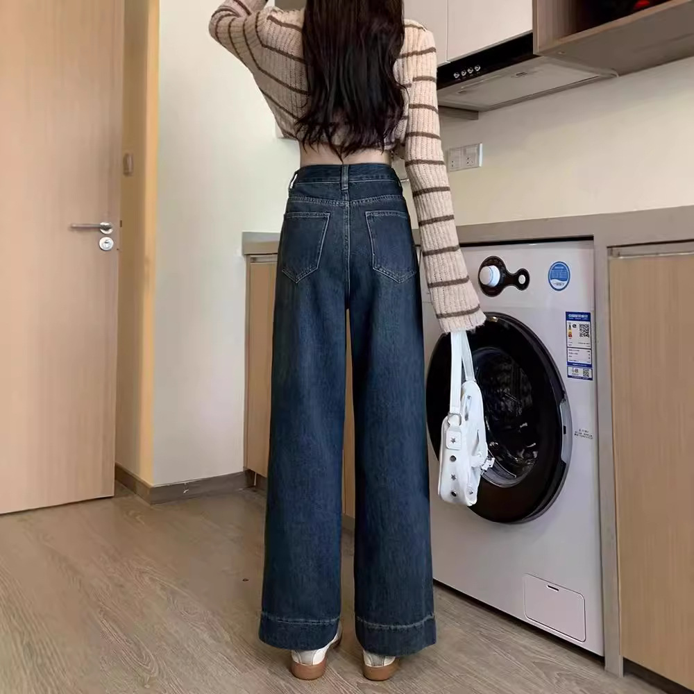 Deep blue jeans, women's wide leg pants, 2025 Spring and Autumn new style, high waist, loose fit, slim and tall straight leg pants