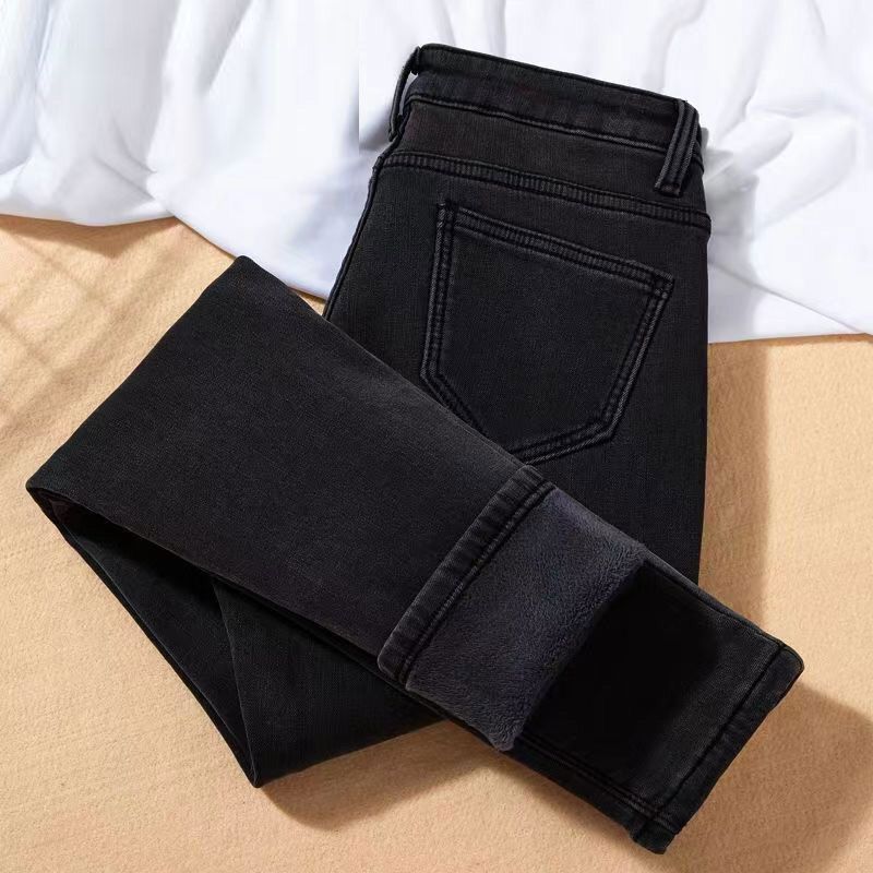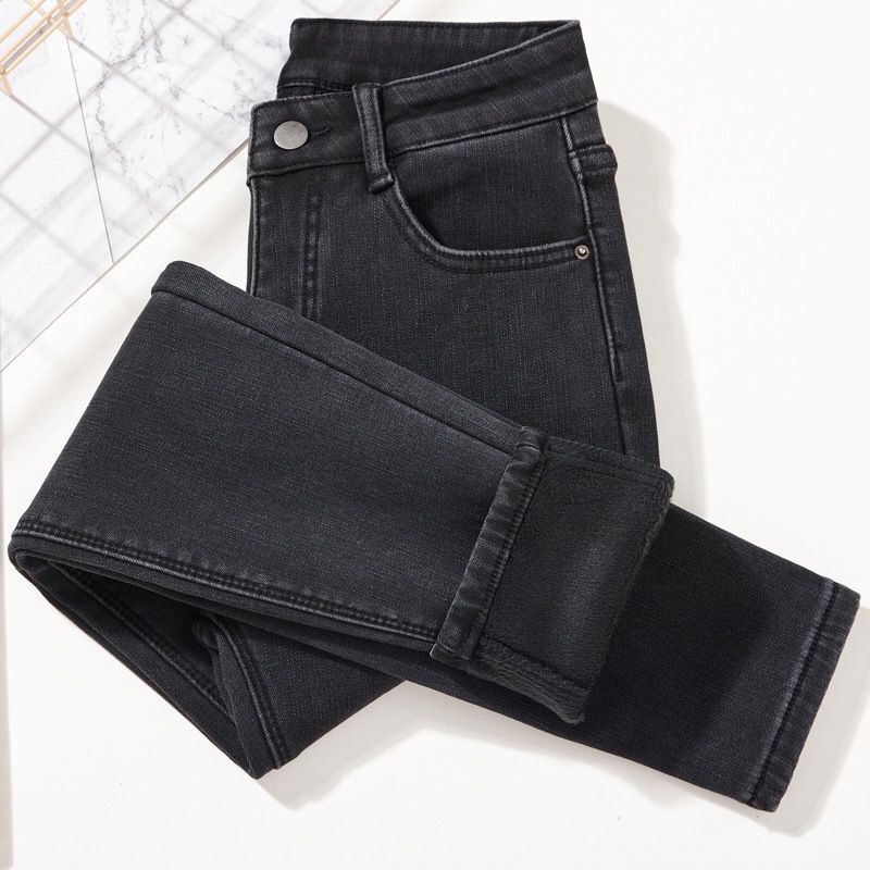 Новые джинсы с плюшевыми толстыми джинсами, высокая талия, худая, большая, эластичная, эластичная, зимняя корейская версия
