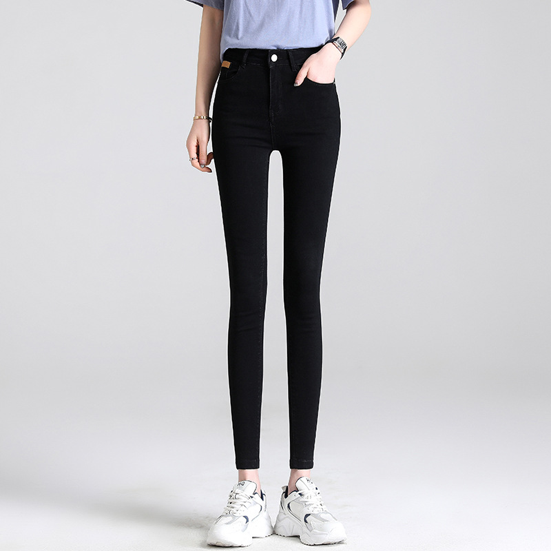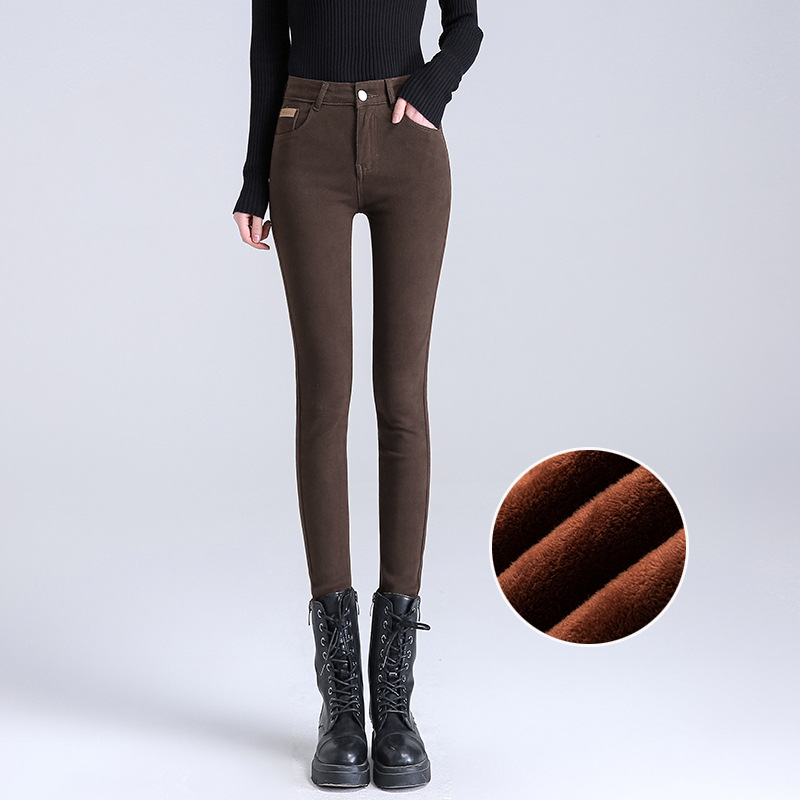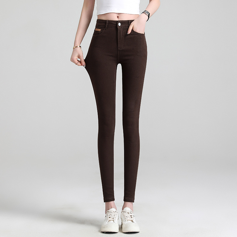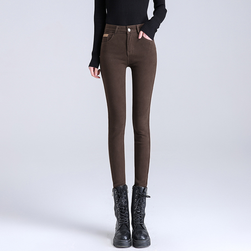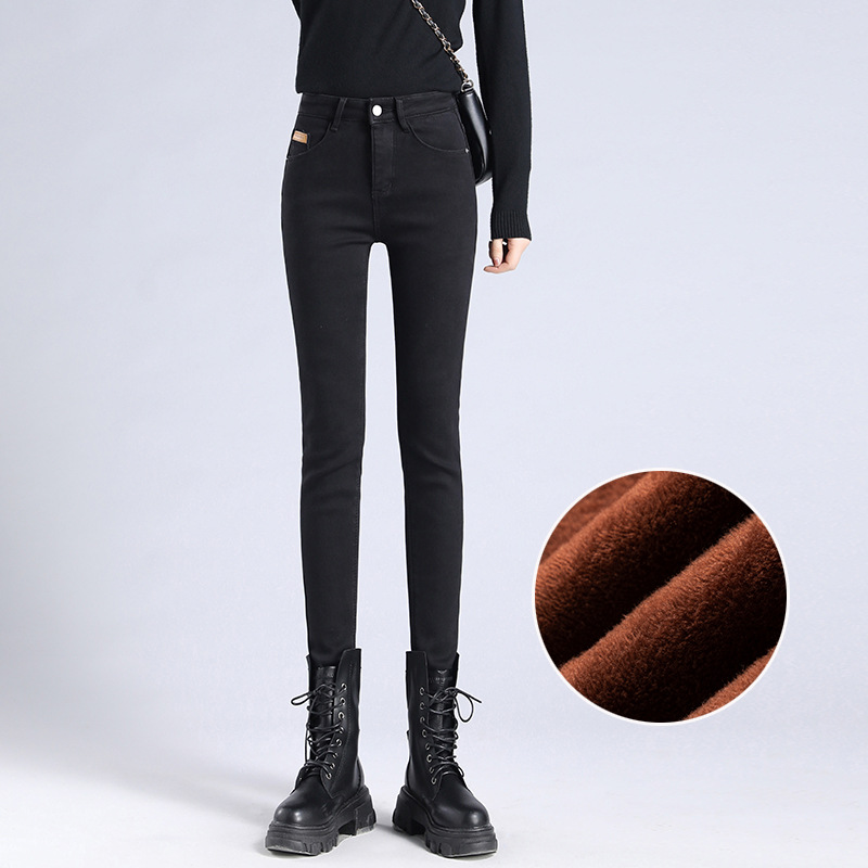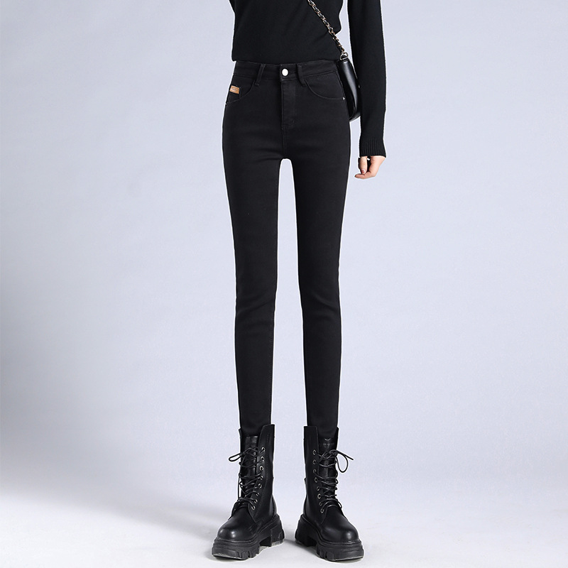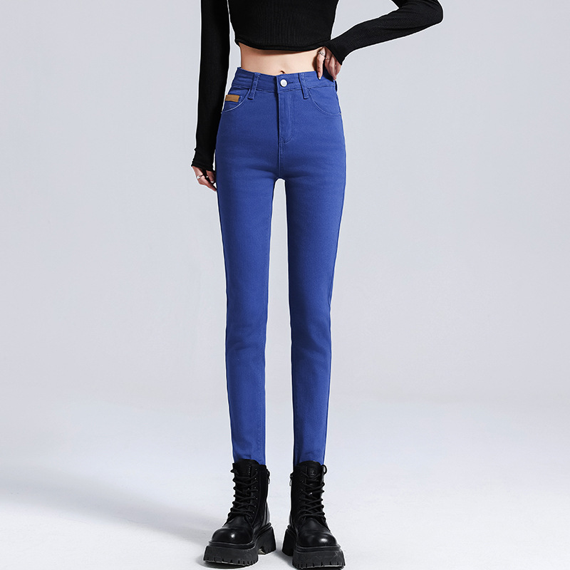 米白色加绒牛仔裤女小脚秋冬高腰显瘦弹力加长女裤休闲九分铅笔裤