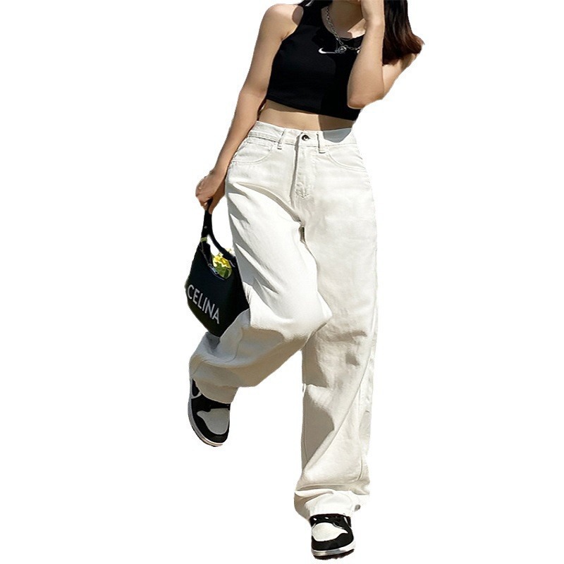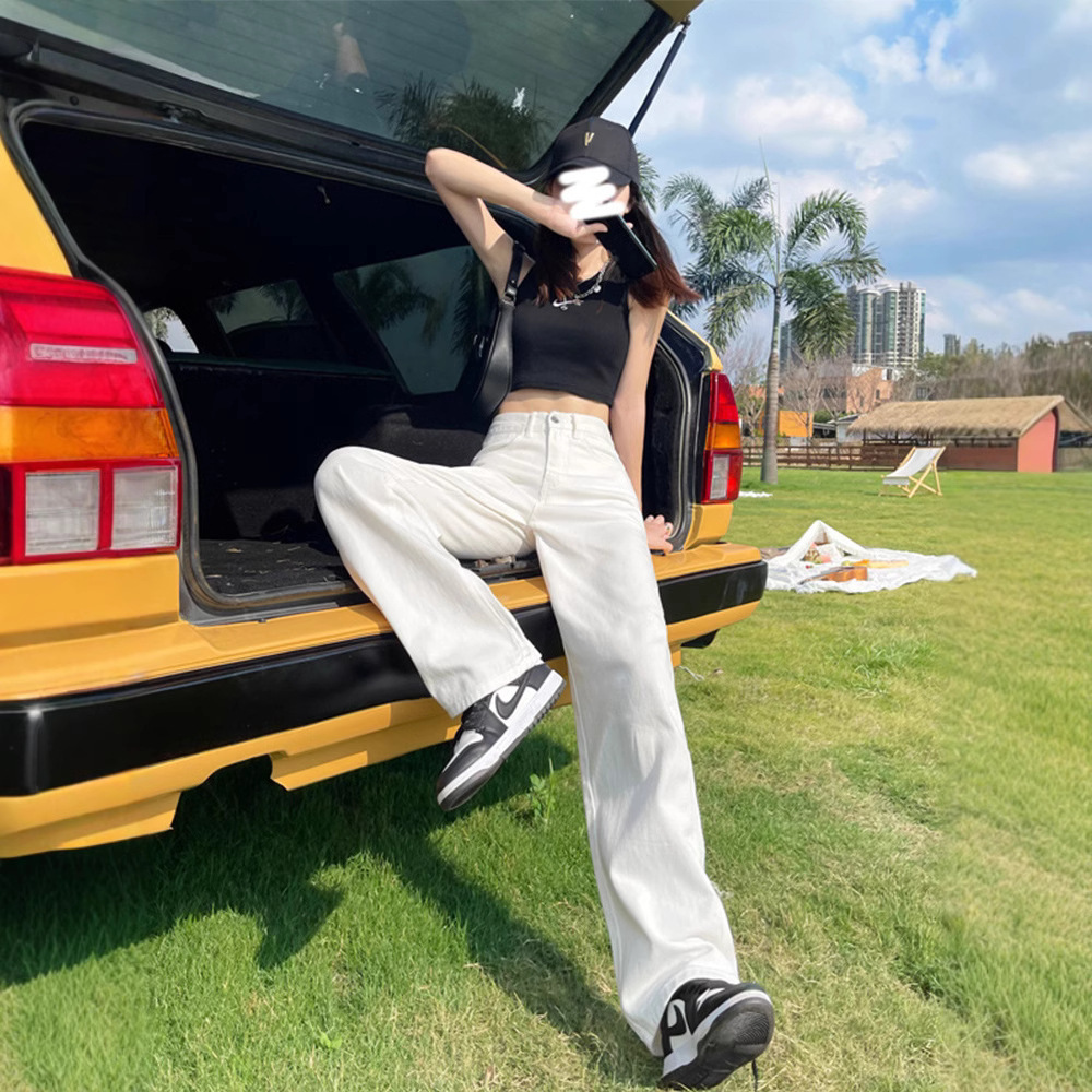 【 Flash Purchase Direct Supply 】 White High Waist Narrow Edition Wide Leg Jeans for Women's Spring and Autumn 2025 Look Thin Straight Leg Floor Pants
