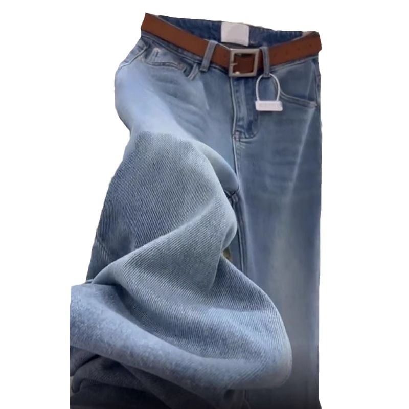 2024 Spring and Autumn New Retro Blue Jeans for Children, High Waist, Stylish, Versatile, Slim, Straight, Wide Leg Pants