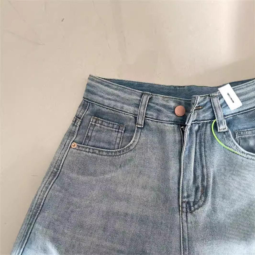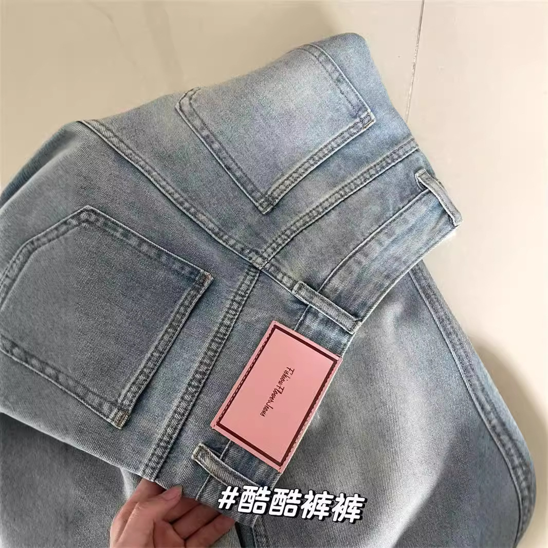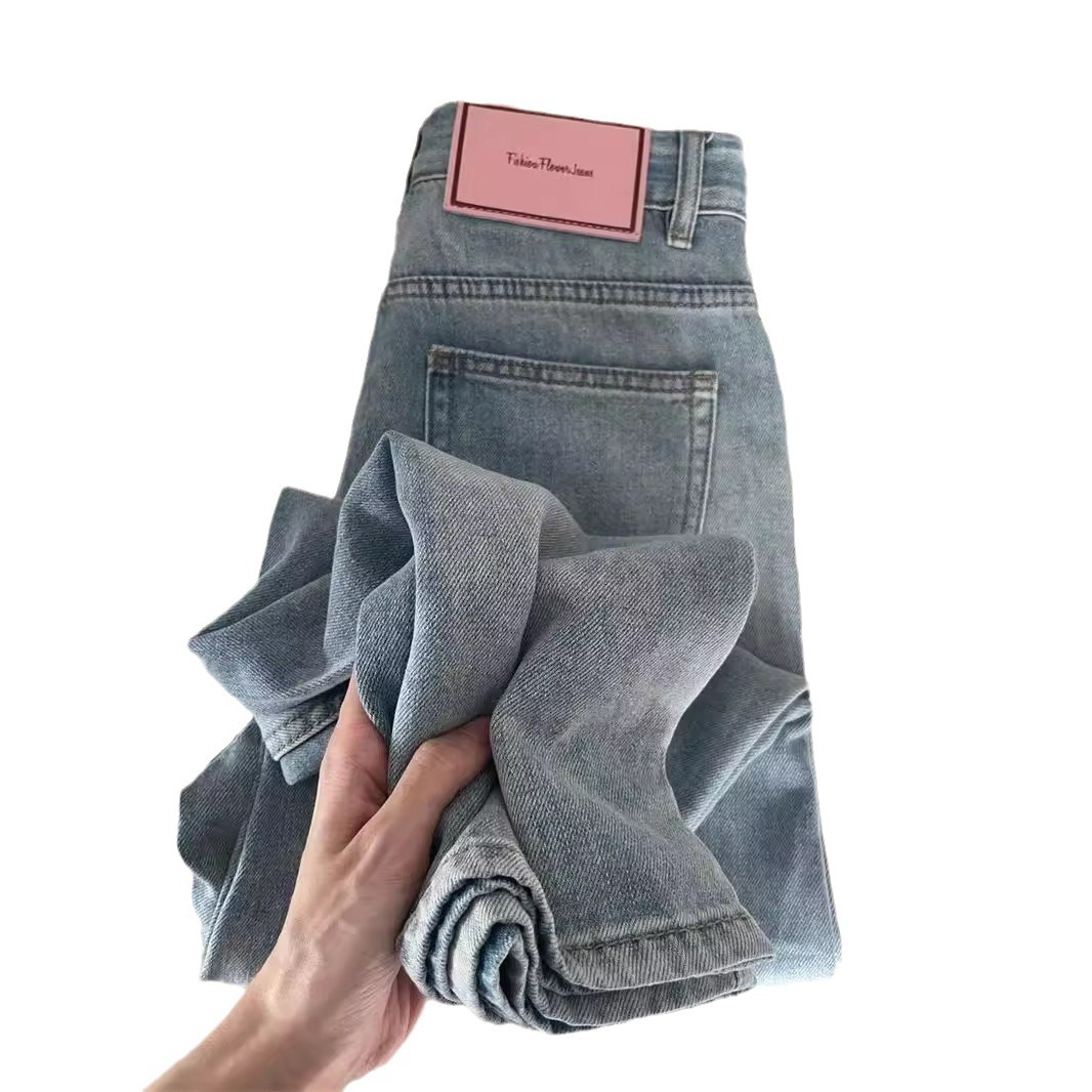 Light colored high waisted jeans for women 2024 new spring and autumn plus size straight tube loose fit pear shaped figure wide leg pants