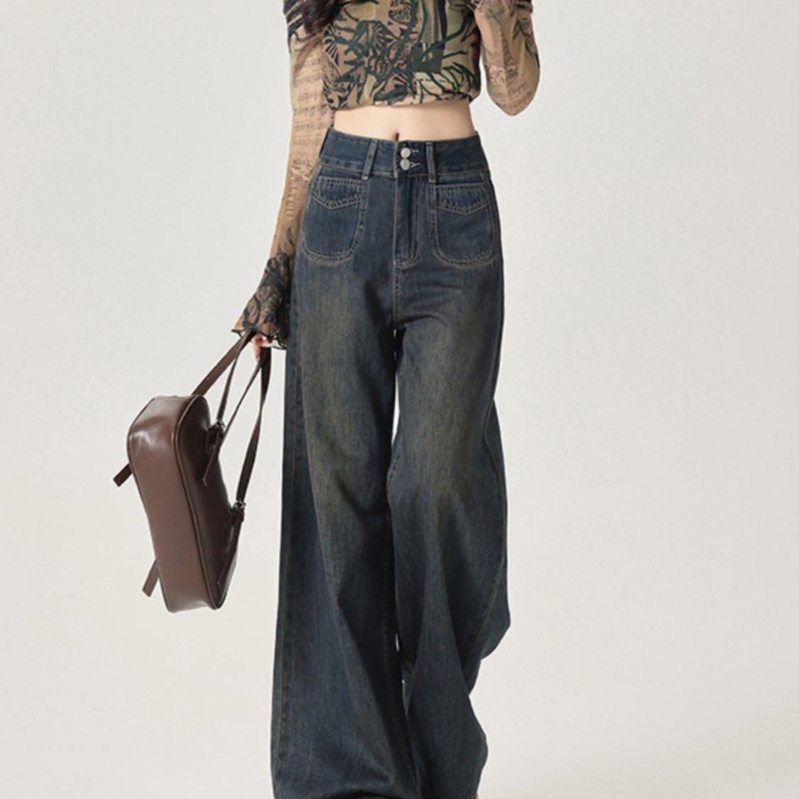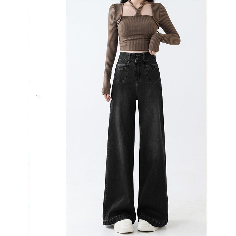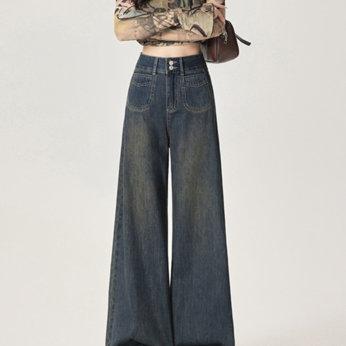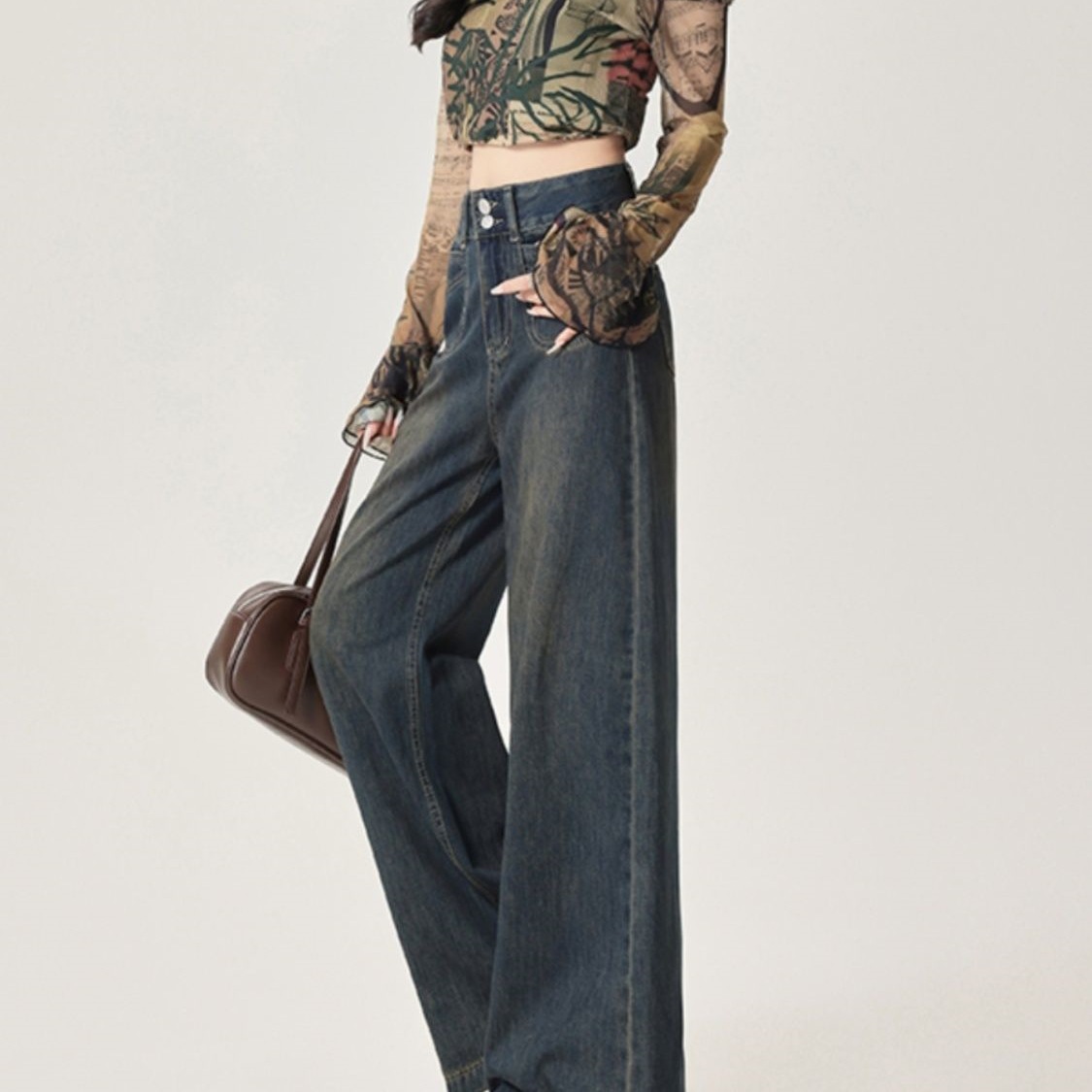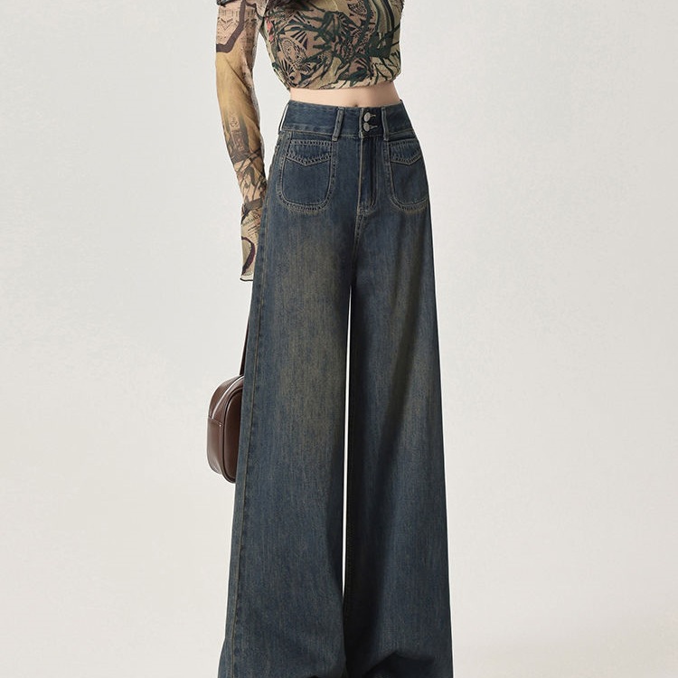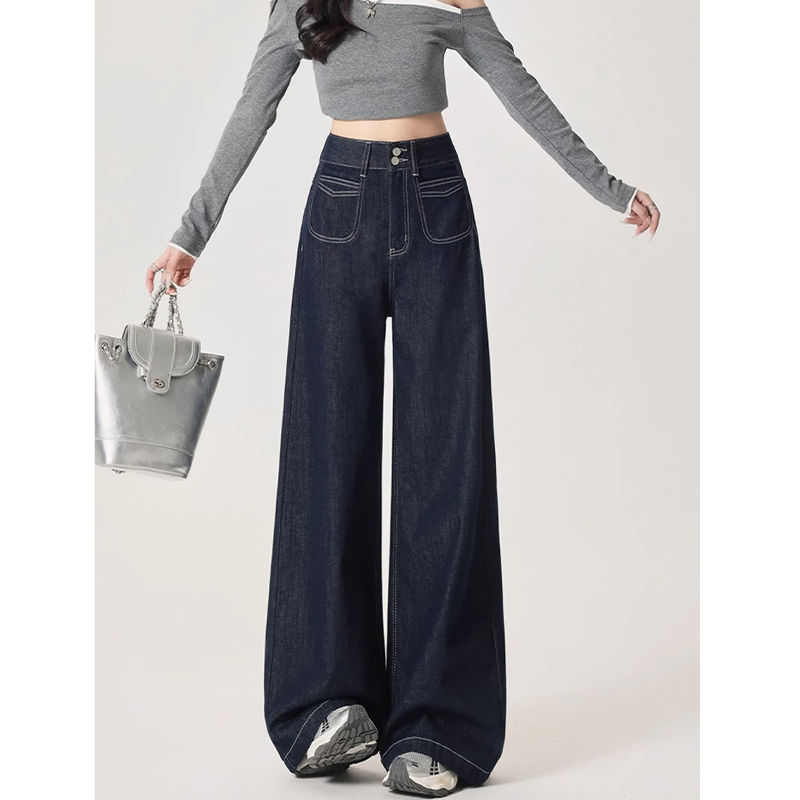 American retro wide leg jeans for women 2025 new spring and autumn season plus size high waist loose fit slimming straight leg pants