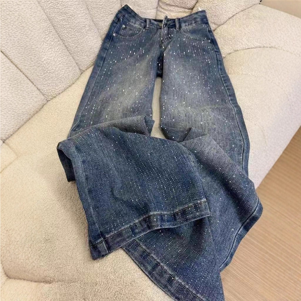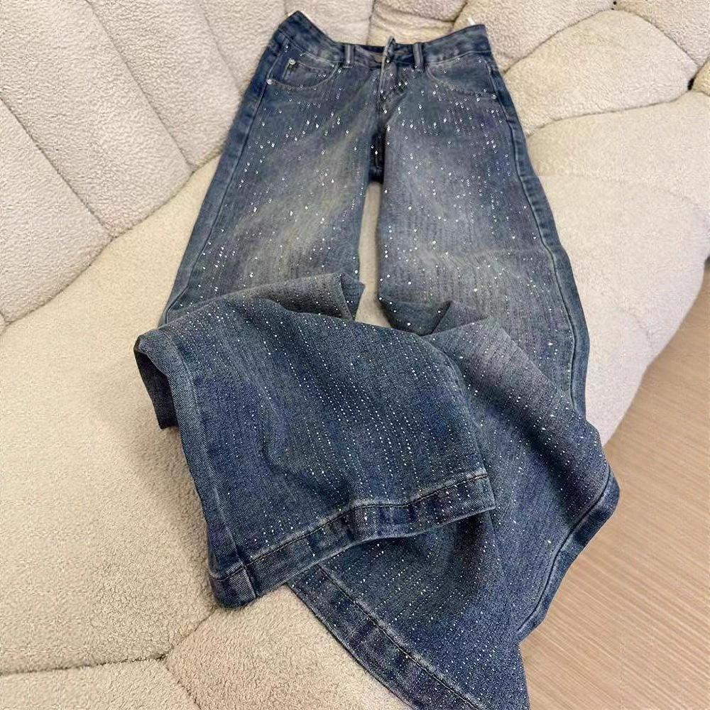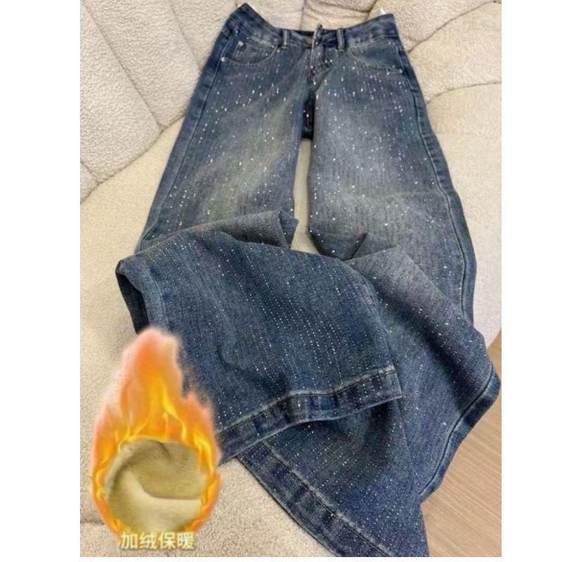 Зимой плюшевые, толстые, маленькие, полные звезд, сверлящие джинсы, высокая талия, свободный цилиндр, широкие ноги, буксируемые по земле.