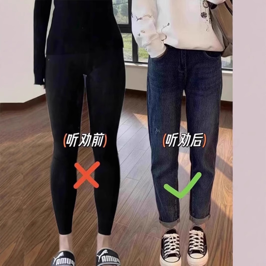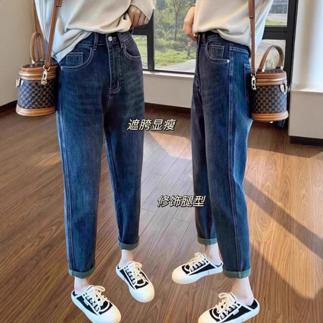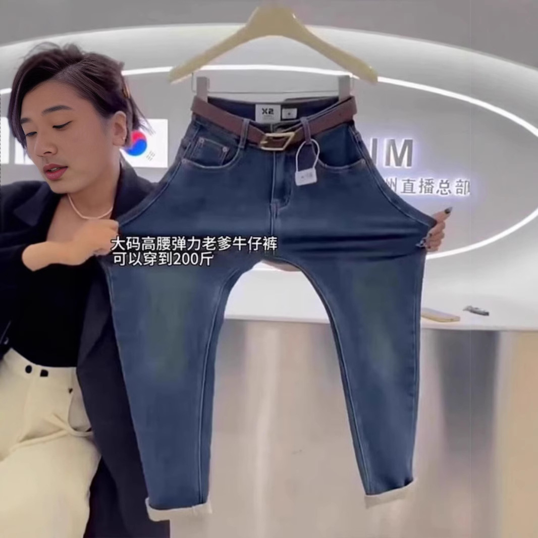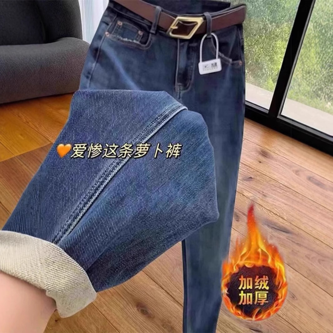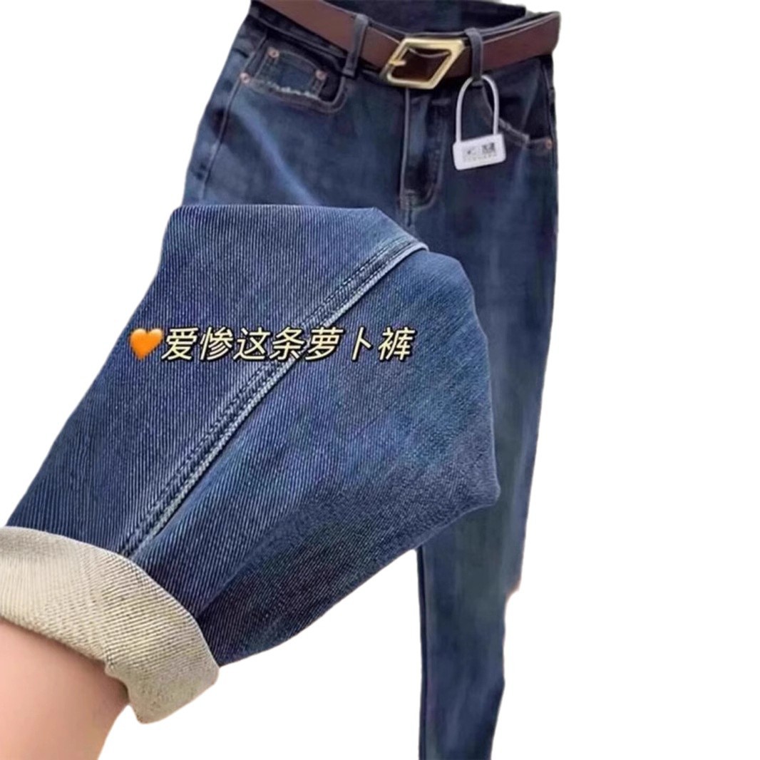Elastic Harun Jeans for Women, Fall/Winter 2024 Large Pear Shaped Body with Velvet for Slimming and High Waist, Dad Carrot Pants